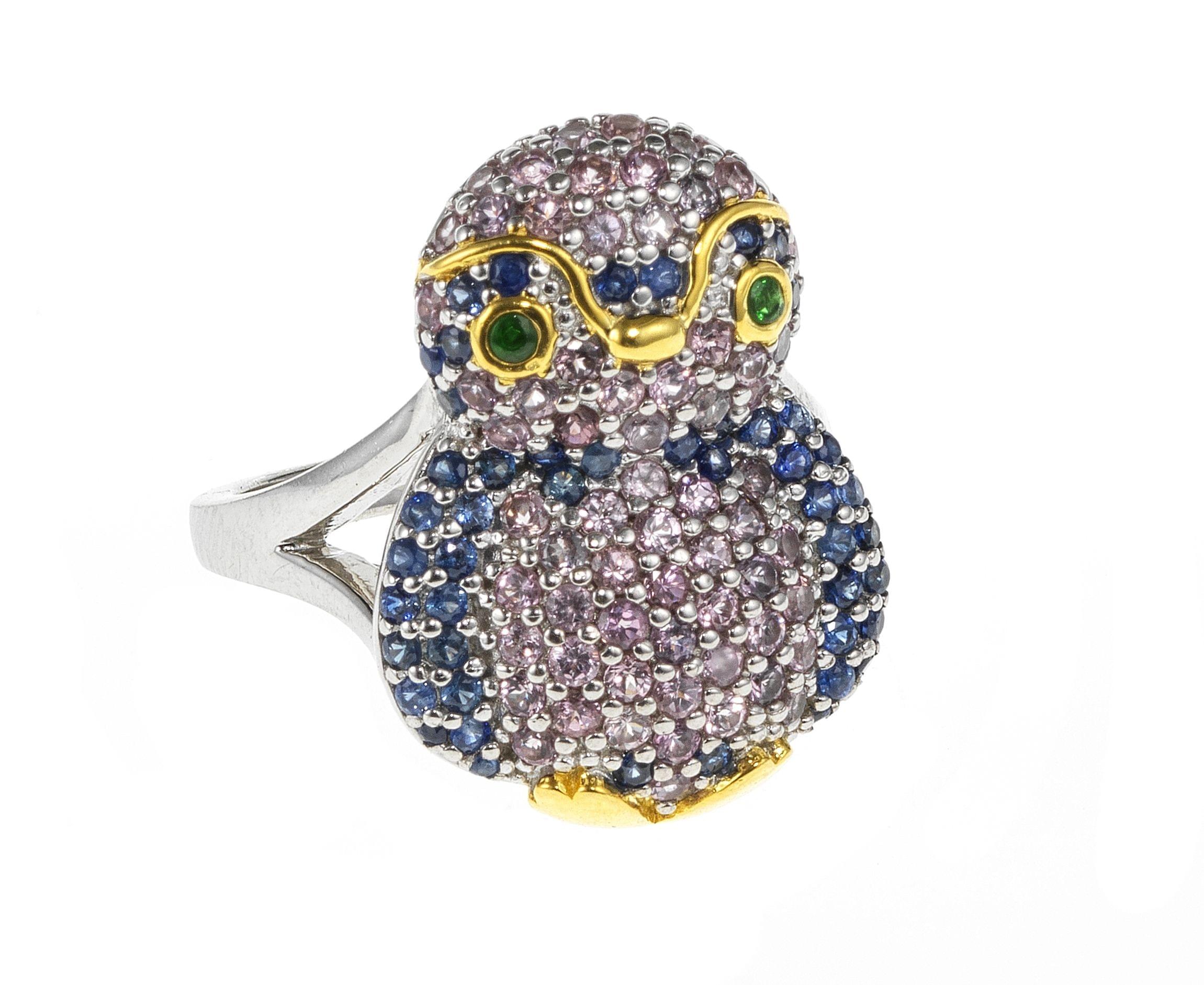 3083. *Bague à motif de pingouin pavé de saphirs et de saphirs roses