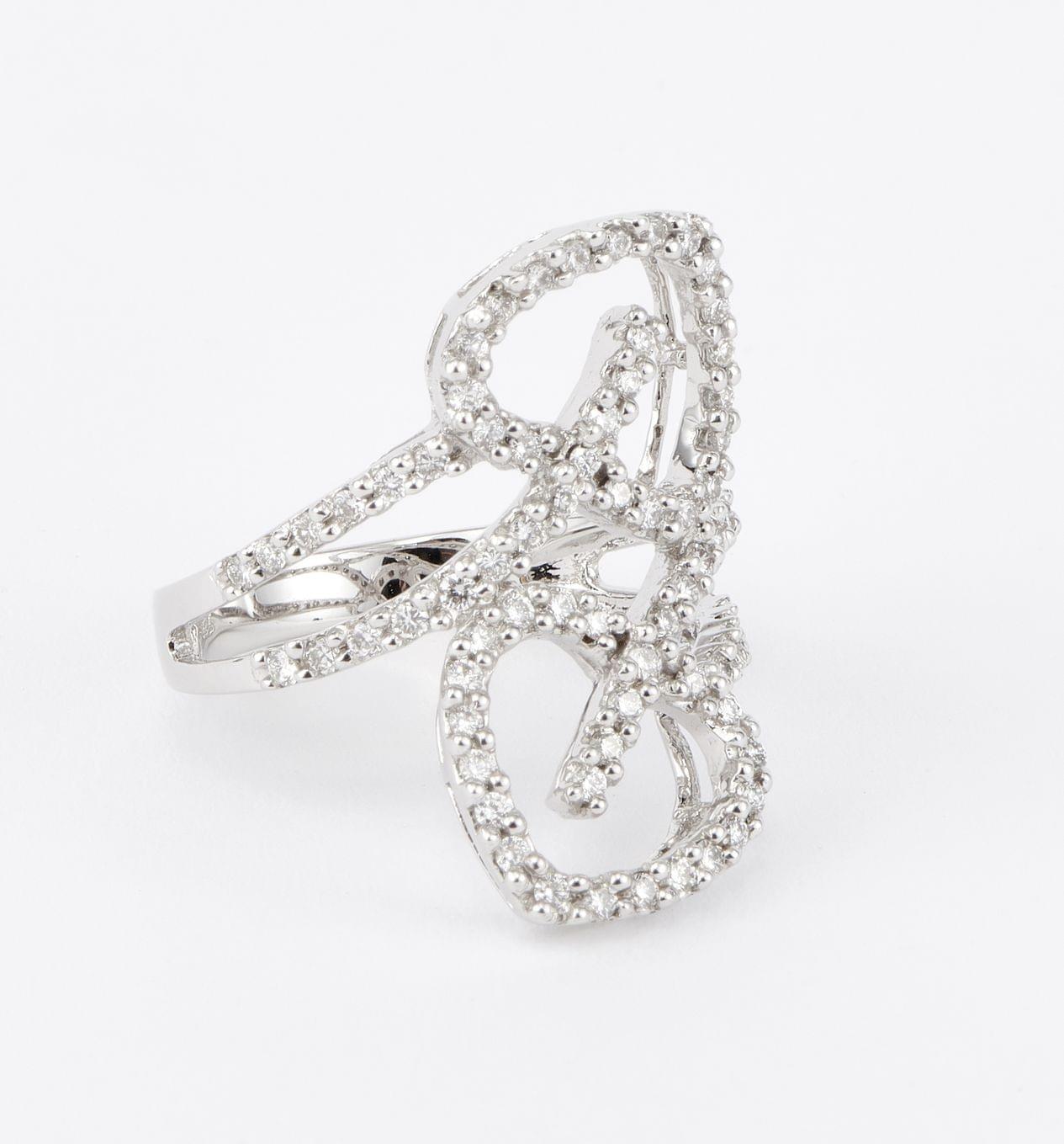 3322. Bague ajourée formant un motif en "toi et moi" serti de diamants