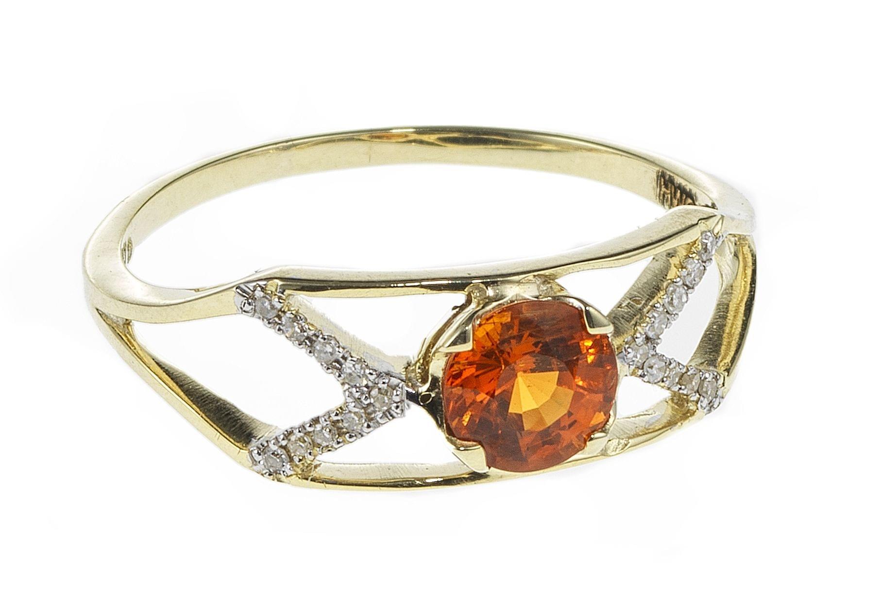 3182. *Bague ajourée sertie d'un saphir orange taille brillant (env. 0,5 ct) épaulé de diamants en chevrons