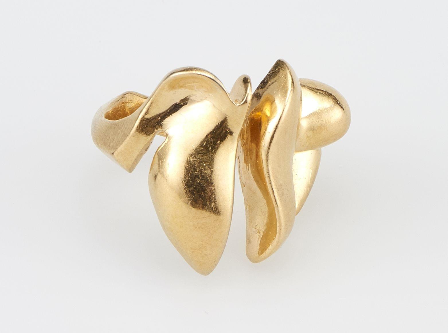 82. Bague sertie d'une perle entourée de pétales ajourés sertis de d...