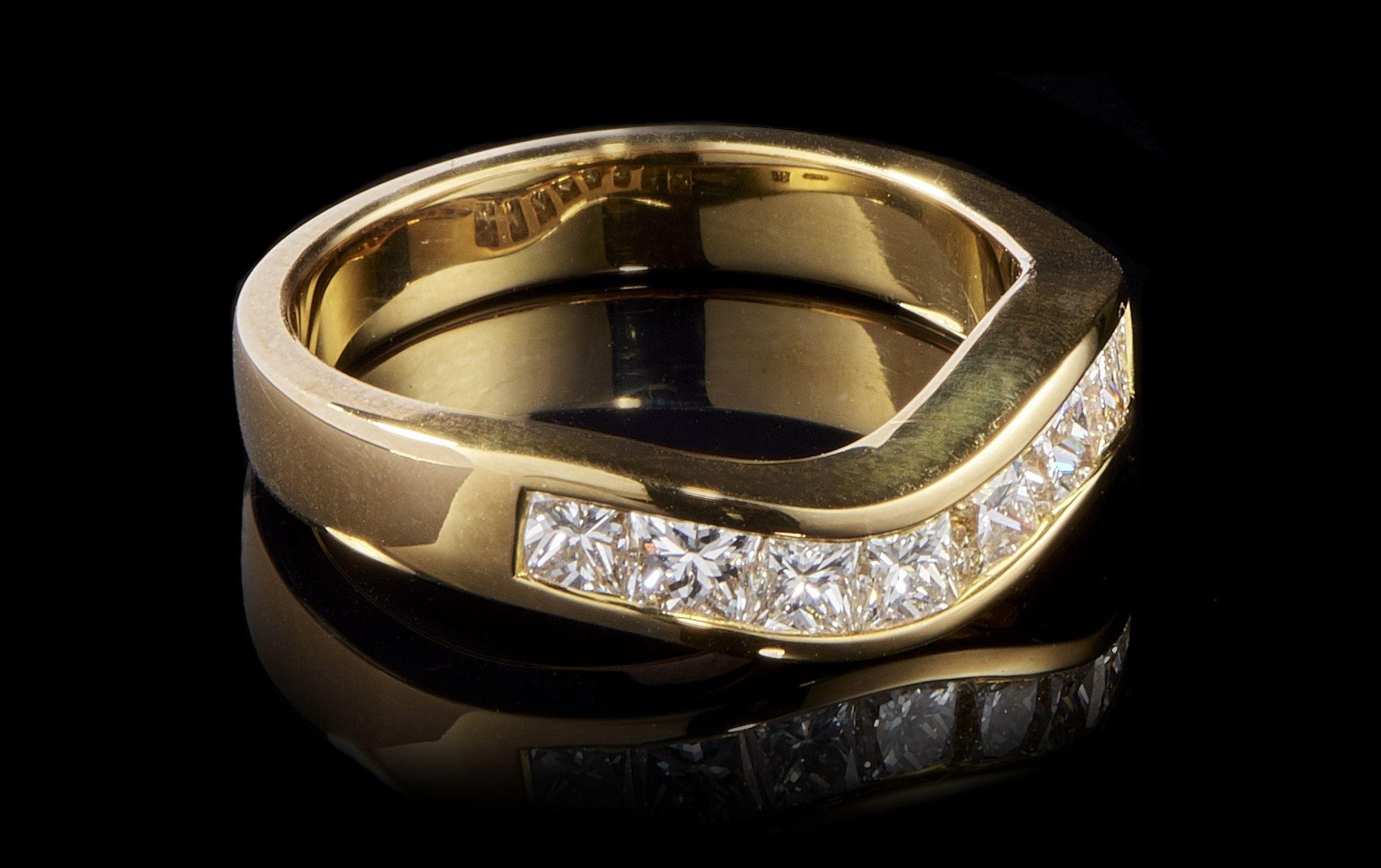 131. Bague-anneau ondulée sertie de diamants taille princesse (env. 0,9 ct)