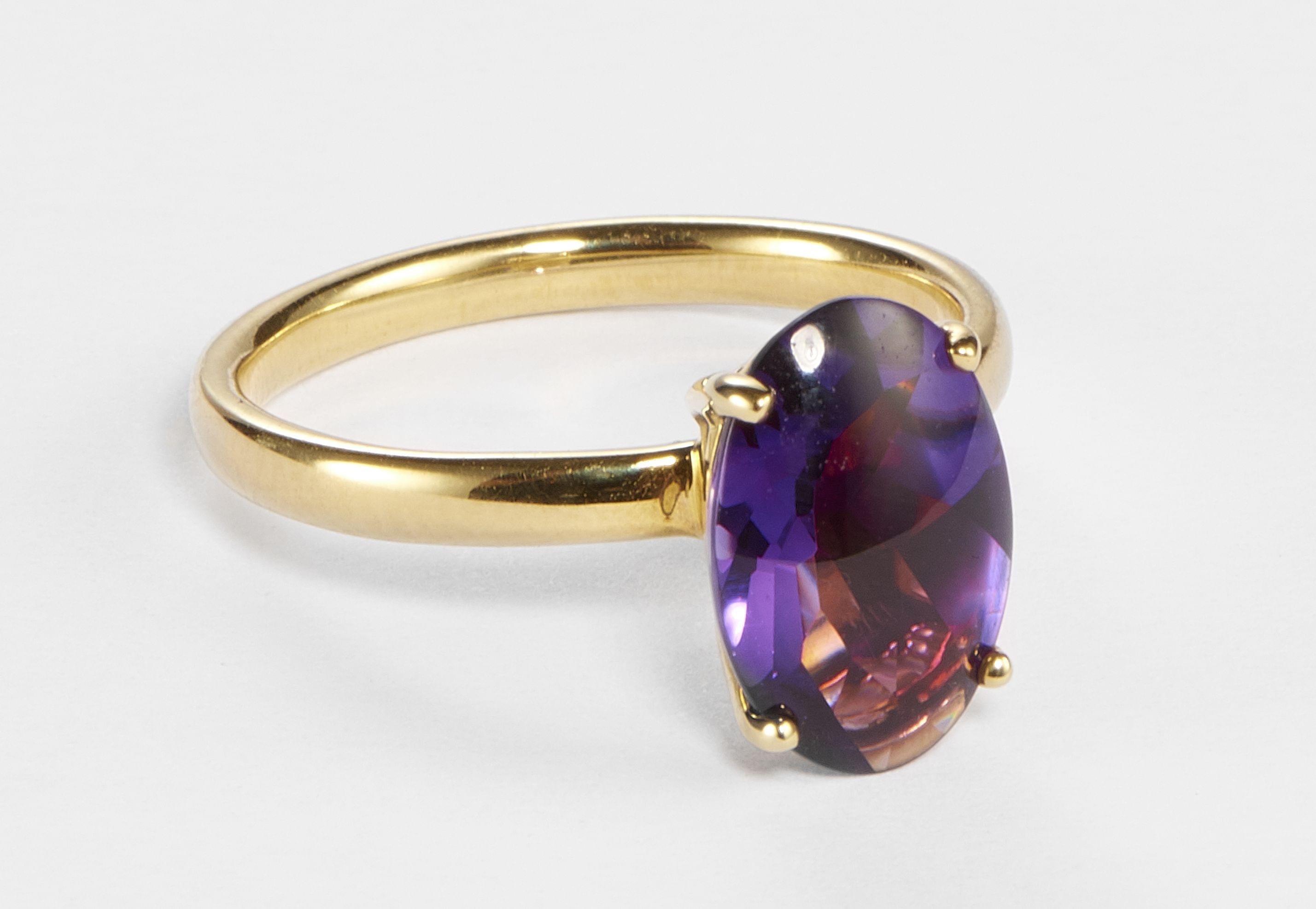 3161. Bague-anneau serti d'une améthyste taille ovale suiffée (env. 2,6 ct)