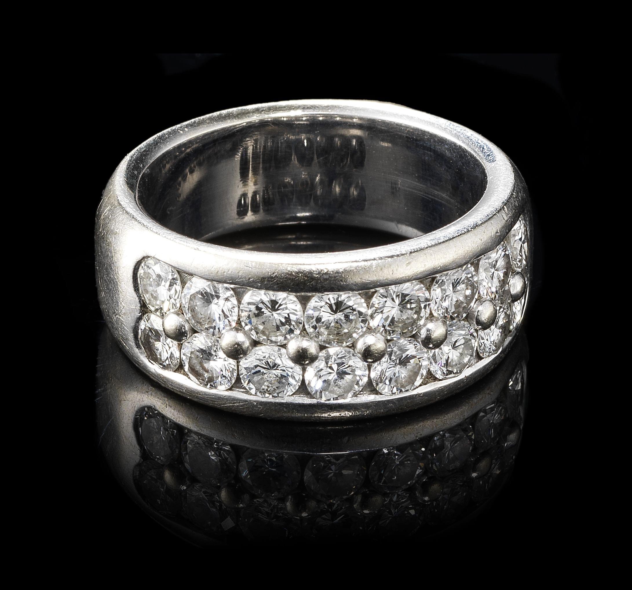 289. Bague bandeau pavée de deux lignes de diamants (env. 3 ct)