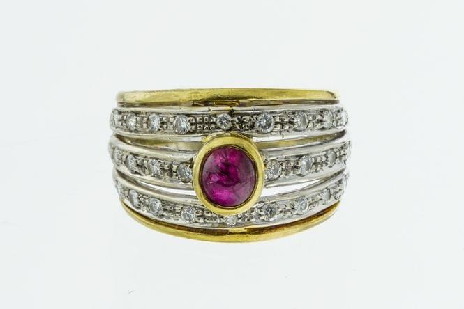 3096. Bague bandeau sertie d'un rubis épaulé de diamants