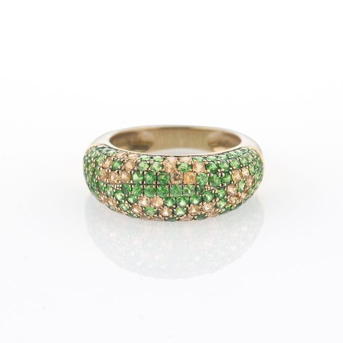 107. Bague bombée à motif de fleurs sertie de grenats tsavorites et de saphirs jaunes