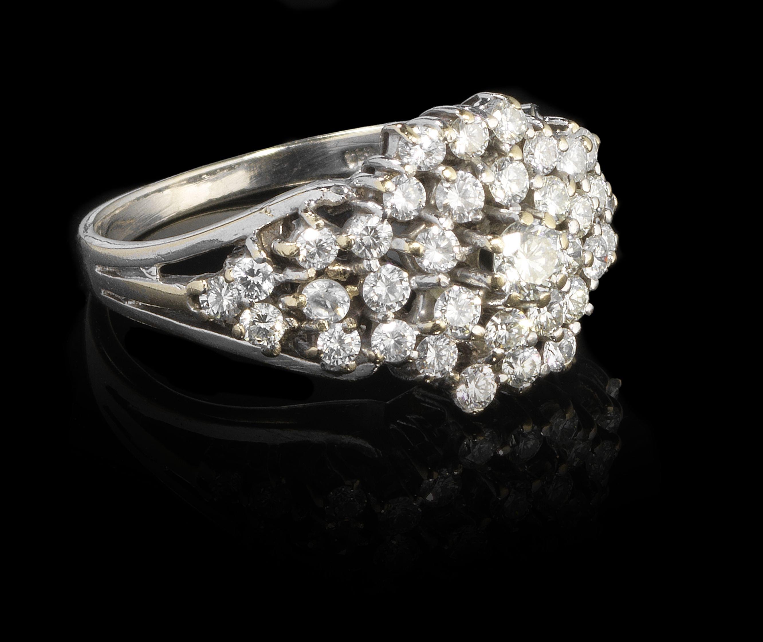 3382. Bague centrée d'un diamant (env. 0.15 ct) dans un pavage de diamants (total env. 0,7 ct)