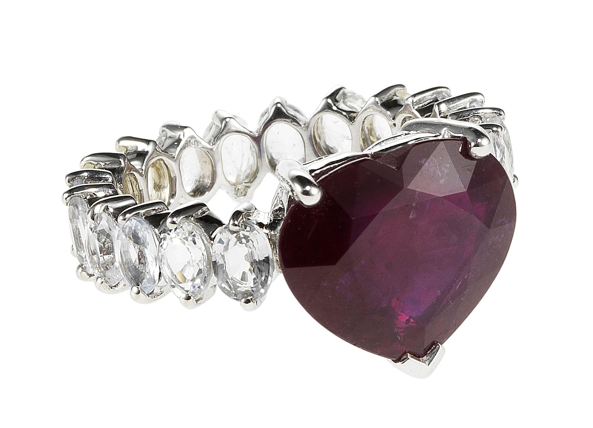 3107. *Bague centrée d'un rubis taille cœur (env. 10,5x12,8x5,5 mm)