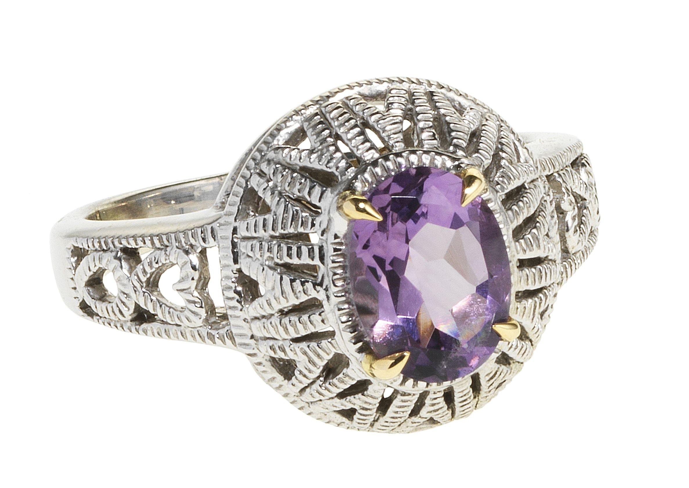 3006. *Bague centrée d'une améthyste taille ovale sur une monture ajourée