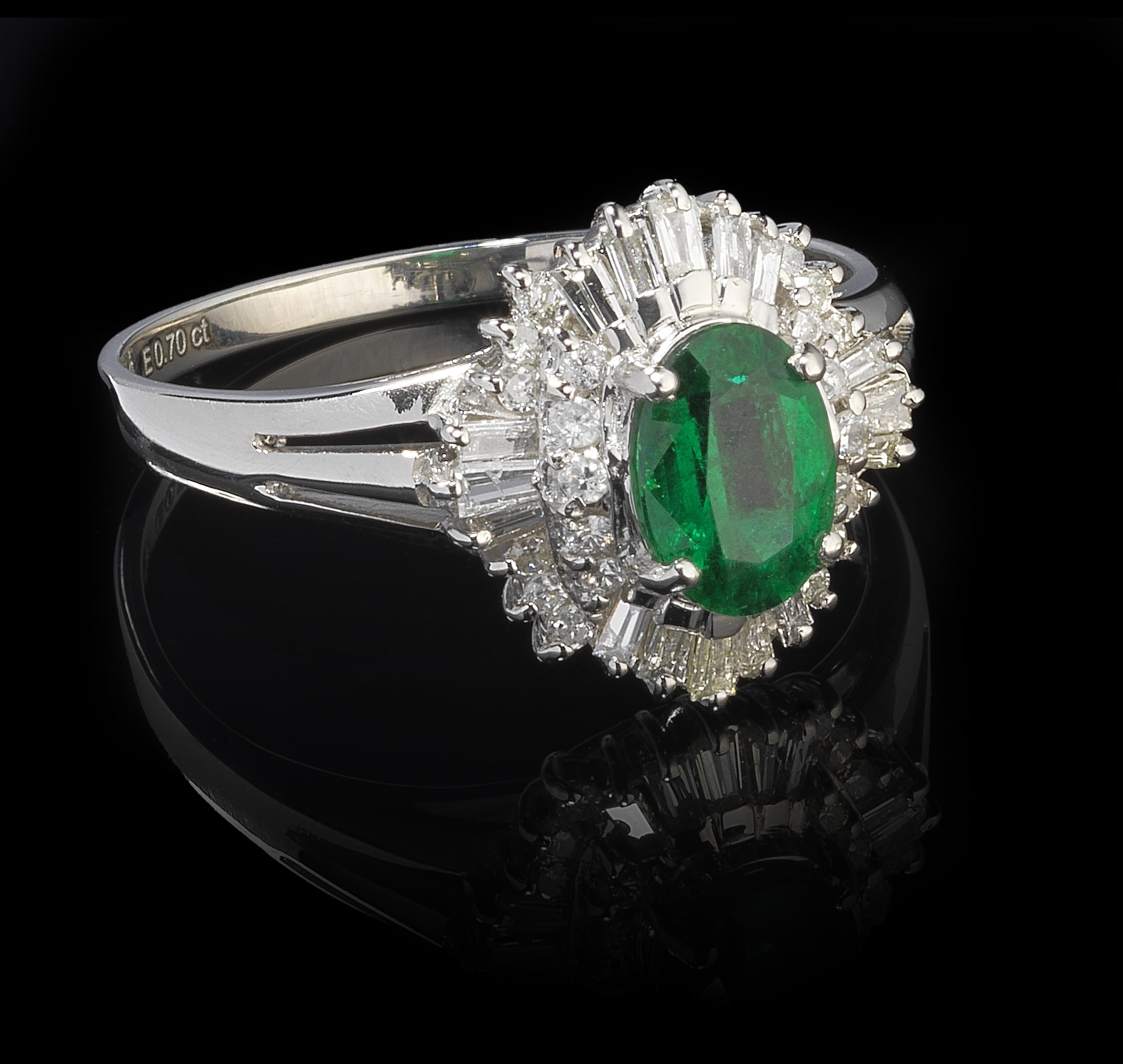 3427. *Bague centrée d'une émeraude taille ovale (0,7 ct)
