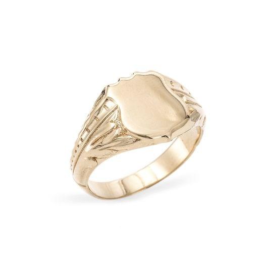 427. Bague chevalière sertie d'un diamant taille ancienne