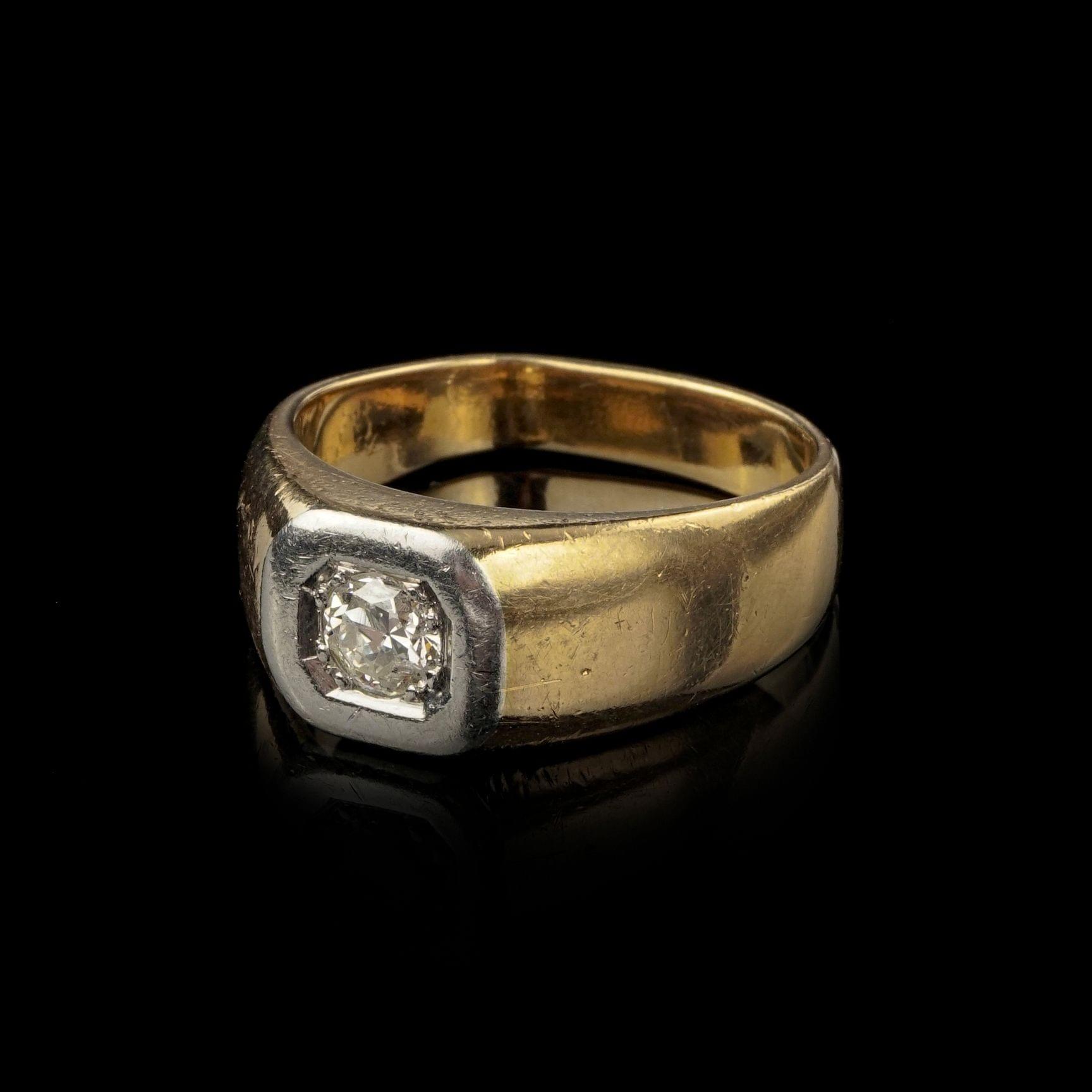 802. Bague chevalière sertie d'un diamant taille ancienne (env. 0,4 ct)