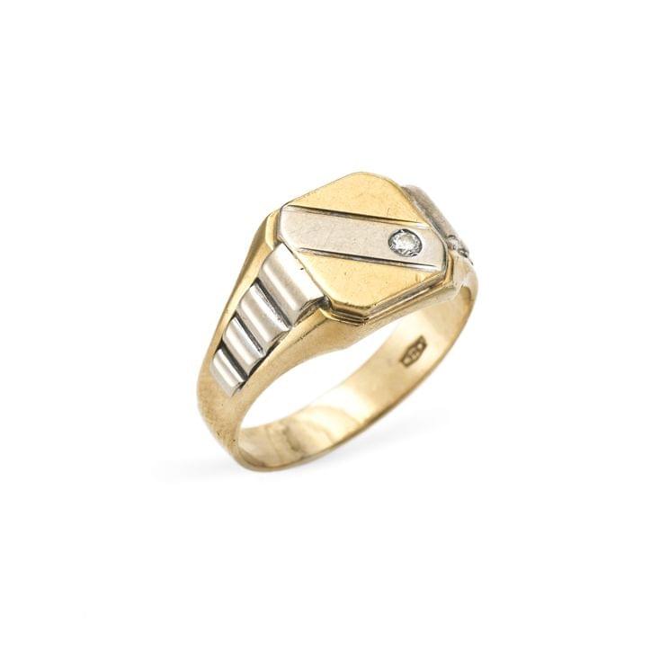 3203. Bague chevalière sertie d'un diamant taille brillant