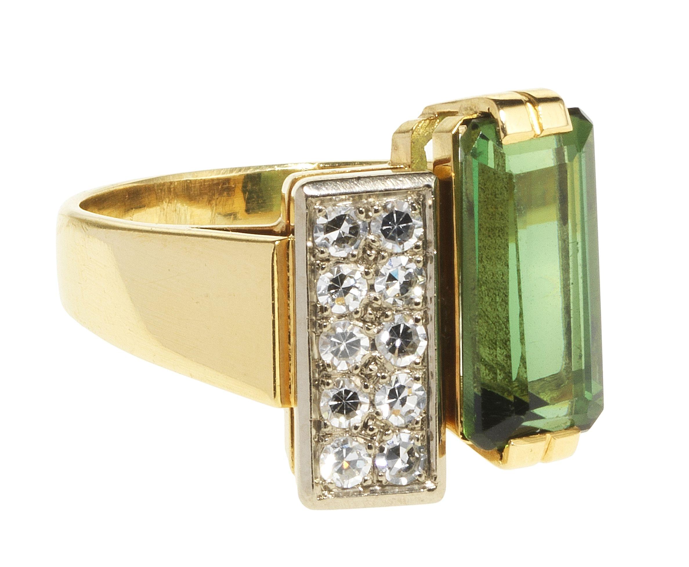 Travail français vers 1930, platine et or gris 750, L 18 cm, 34...