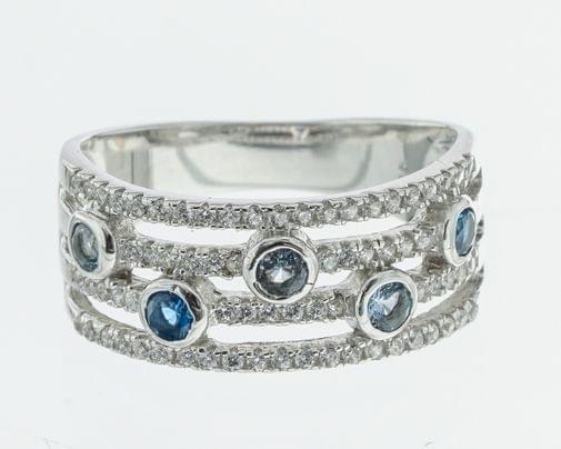 3085. Bague composée de quatre anneaux sertis de pierres bleues et de pierres d'imitation pour le diamant