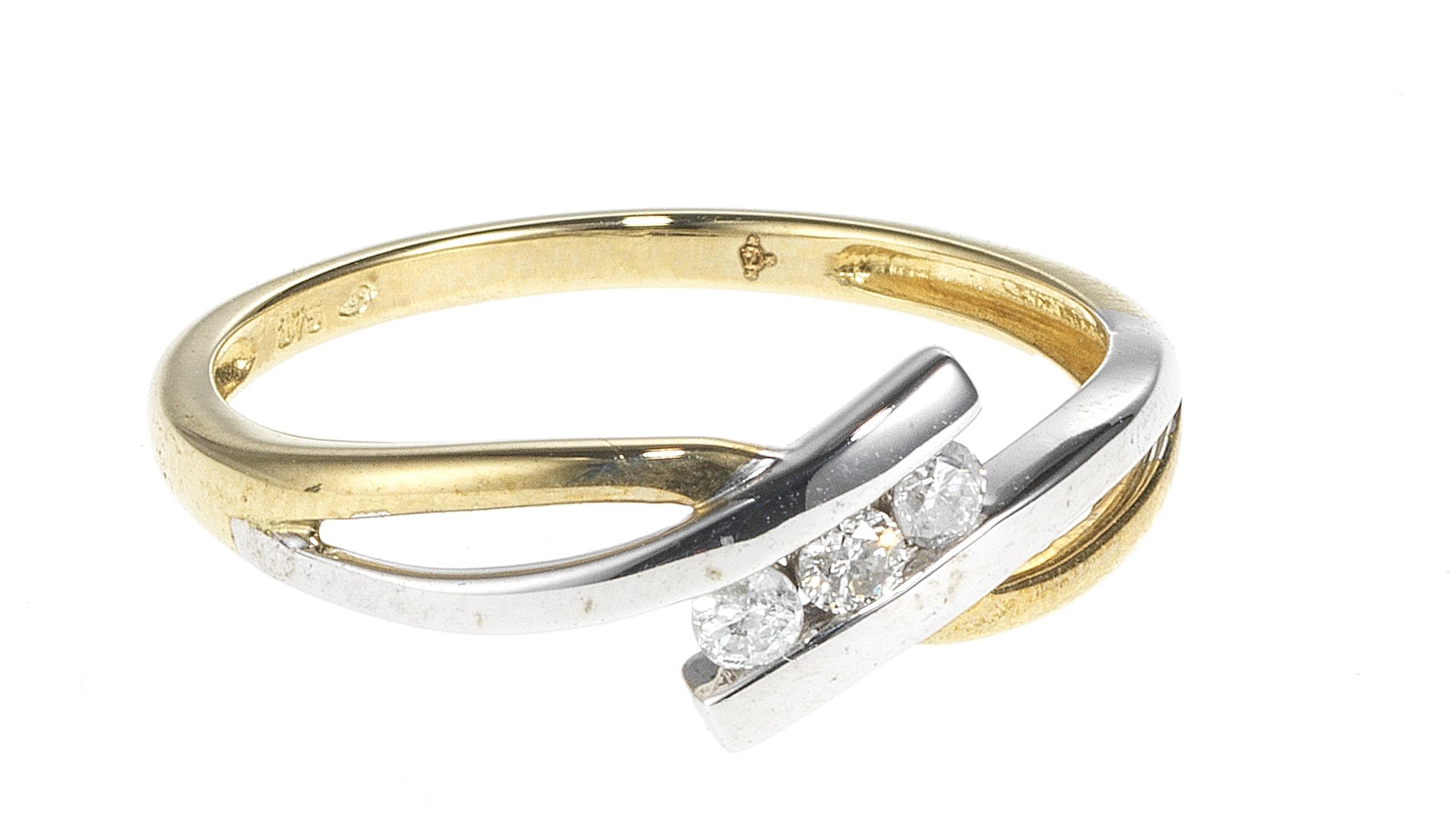 Or et or gris 375, doigt 54-14. Pour les lots précédés d'un *, la TVA de 7,7% est due sur l'entier du prix d'adjudication.