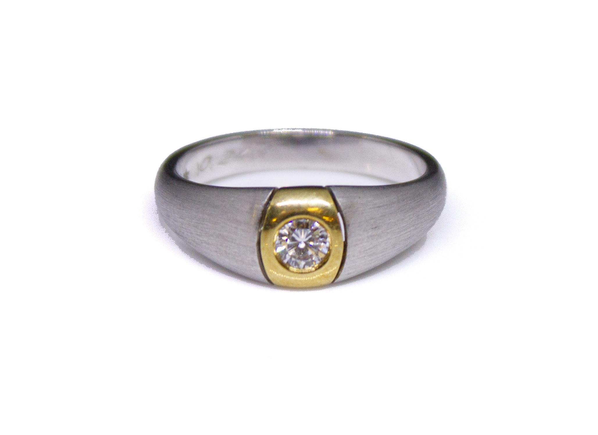 Porcelaine émaillée bleu blanc, cercles de laiton, D 26 cm