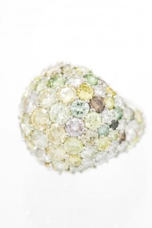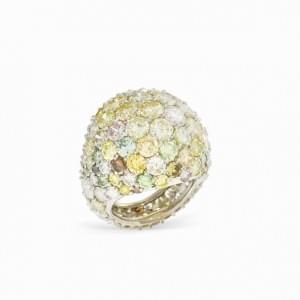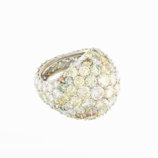 331. Bague dôme entièrement pavée de diamants et diamants de couleur (env 15 ct)