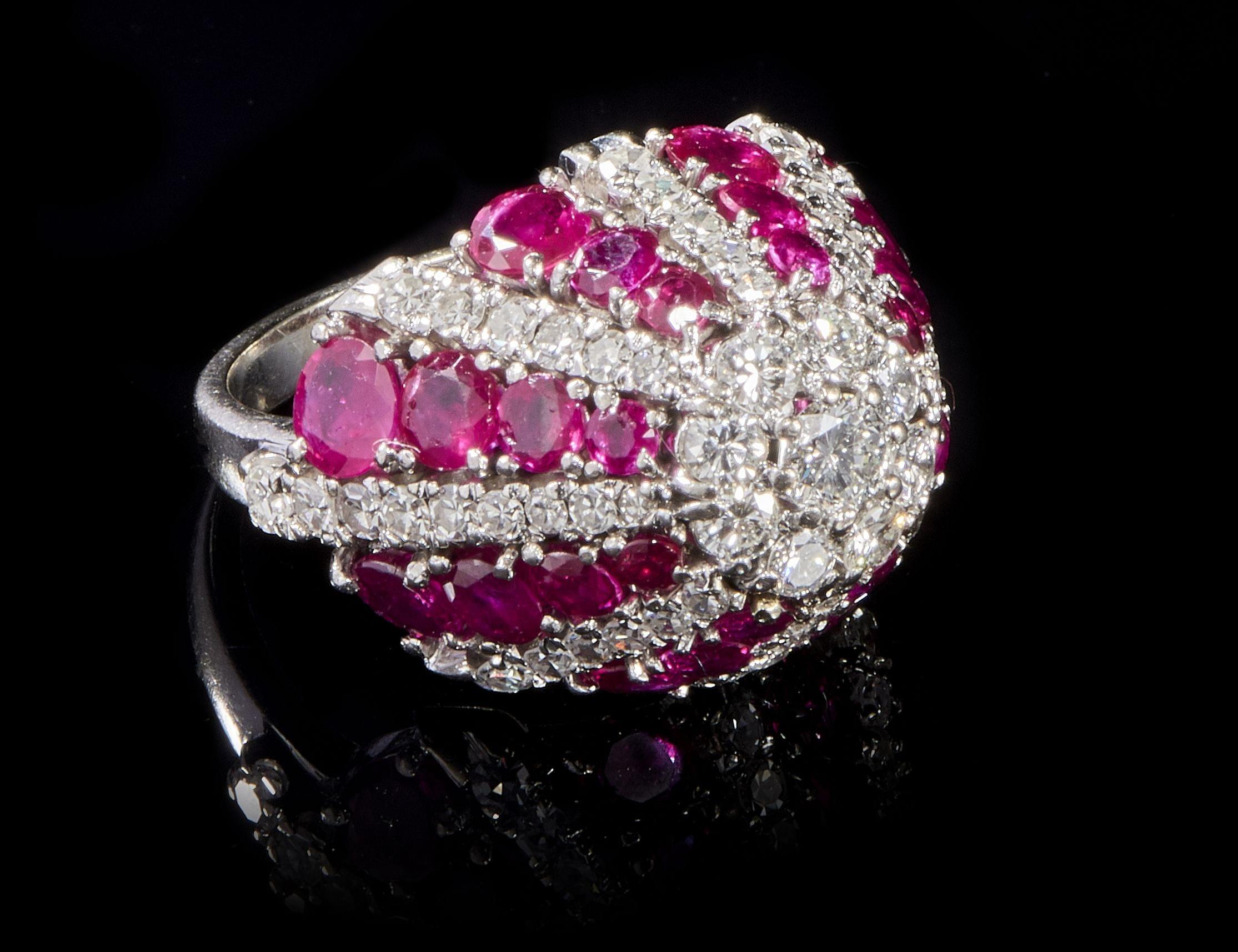 37. Boutons de manchette en cristal de roche sertis de rubis taille...