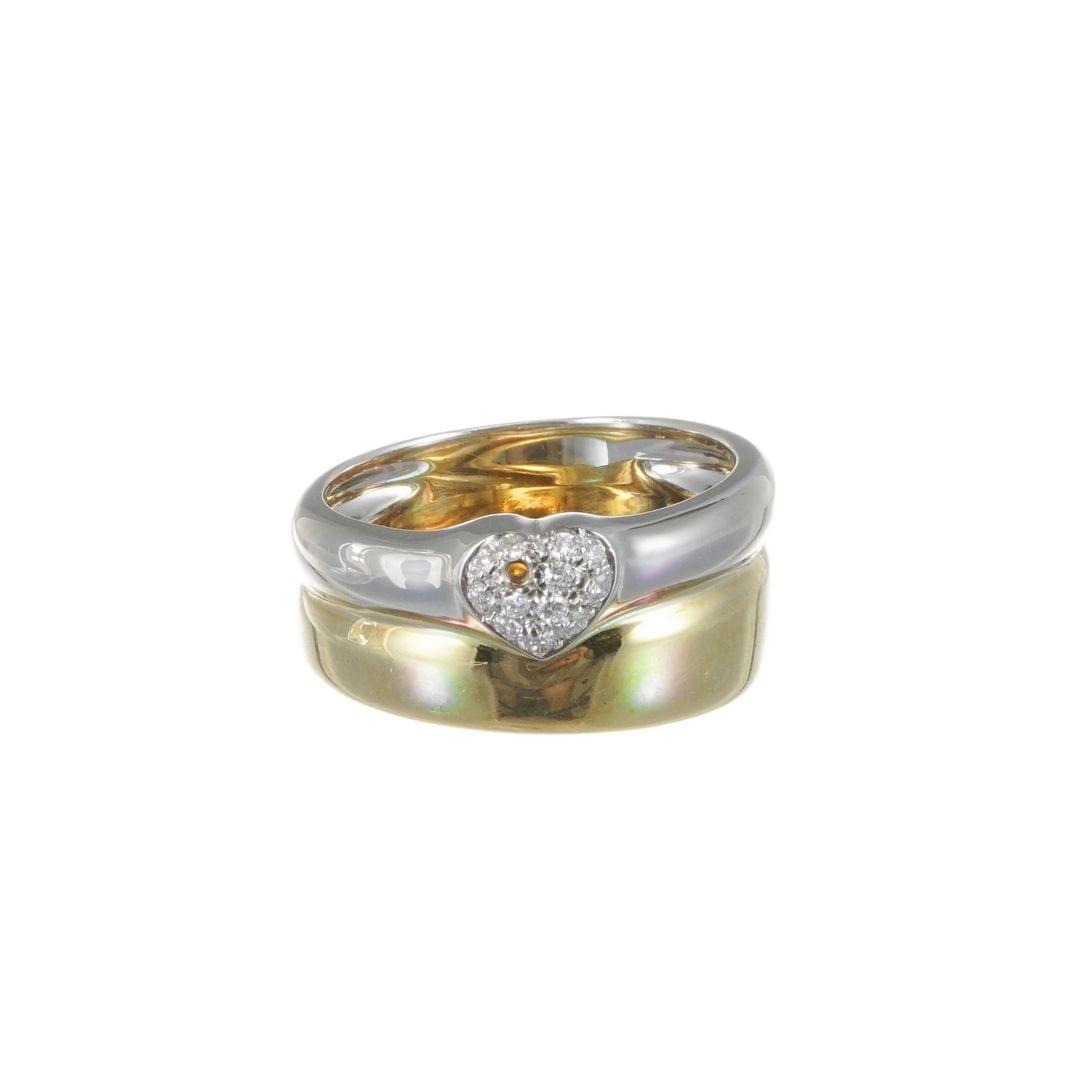 3292. Bague double anneau deux ors, l'un à motif de coeur serti de diamants