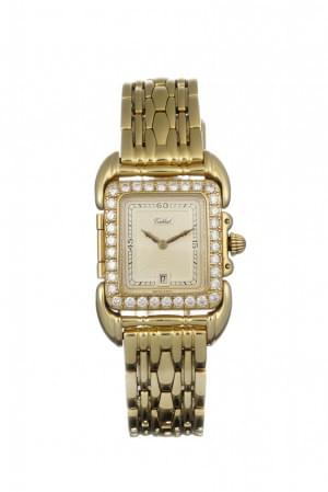 Cadran et aiguilles dorés, index à point serti de diamants, date...
