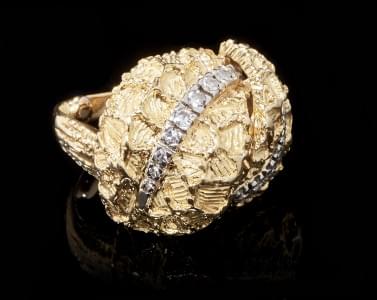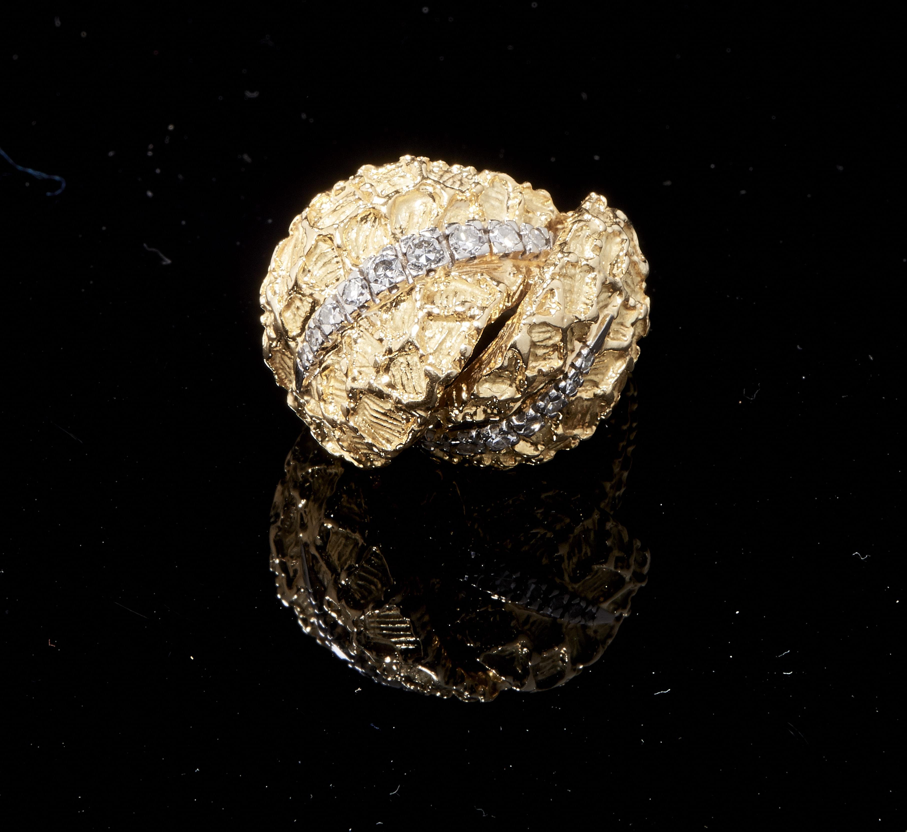 3282. Bague en or froissé sertie de deux lignes de diamants