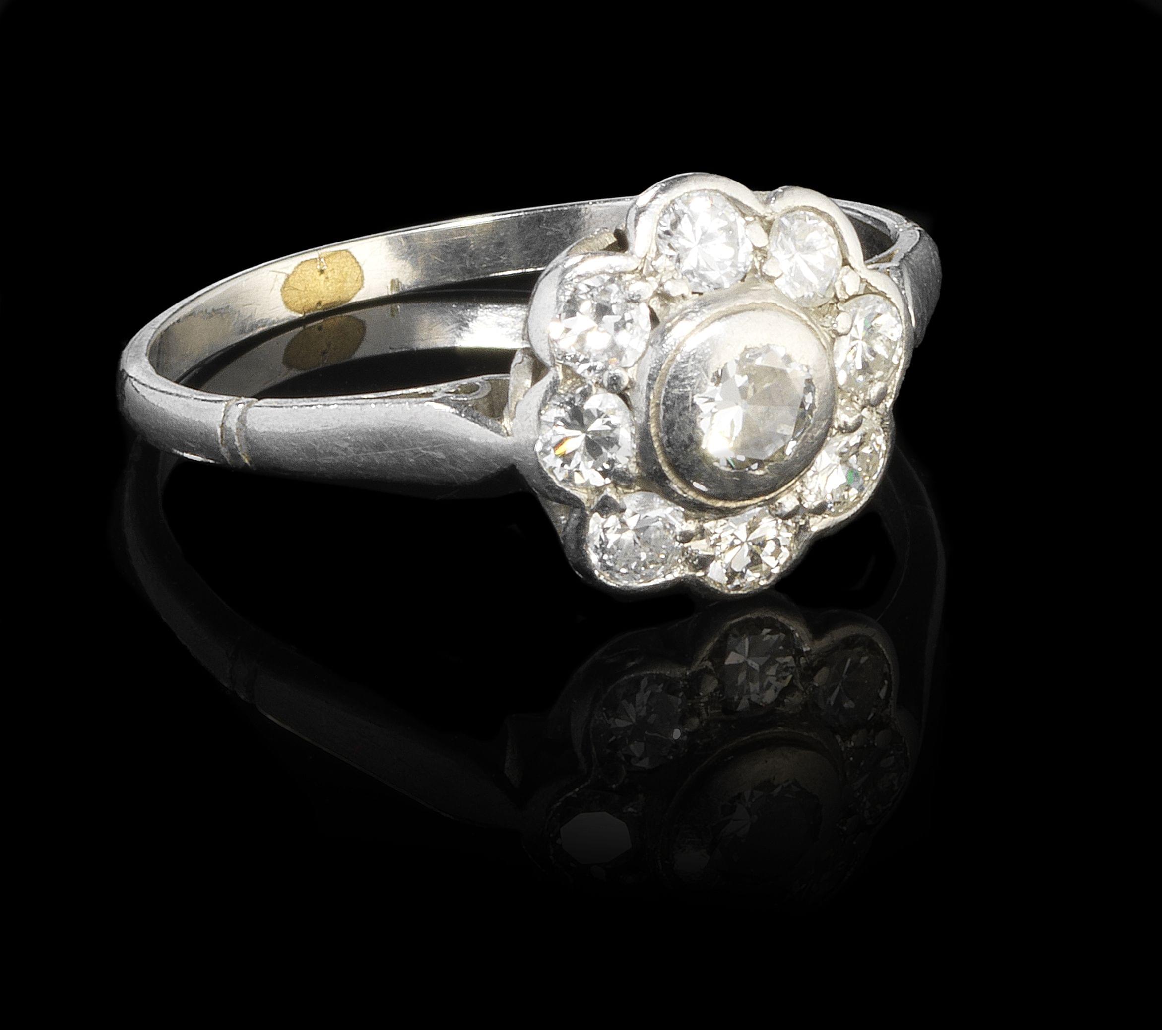 Cadran blanc retenant sept diamants mobiles, aiguilles bleuies,...