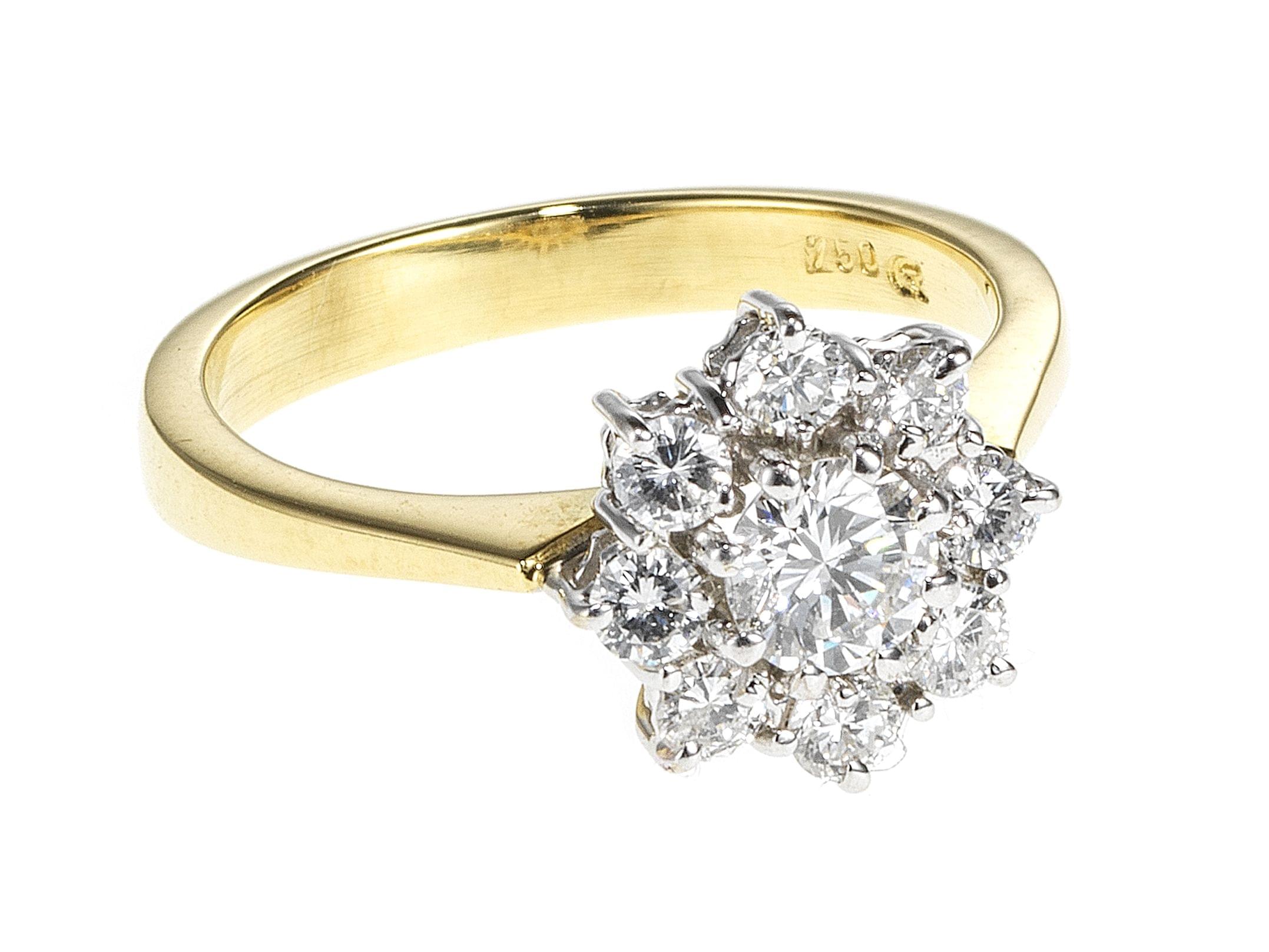 3321. Bague fleur centrée d'un diamant (env. 0,3 ct) entouré de diamants (env. 0,2 ct)