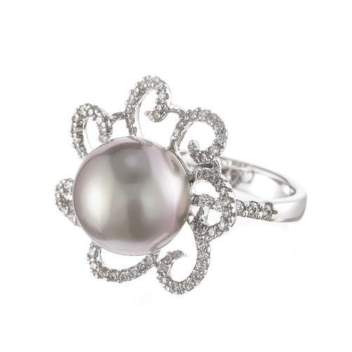 282. Bague fleur sertie d'une perle de Tahiti (11.5 mm) entourée de diamants (env. 1 ct)