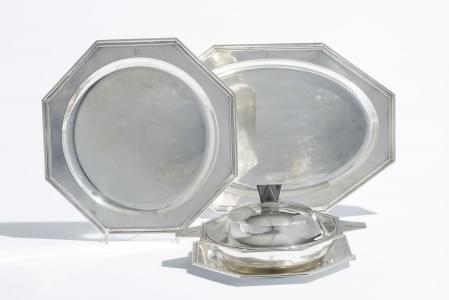 544. Ensemble d'un légumier et trois plats Art Déco à bordure octogo...