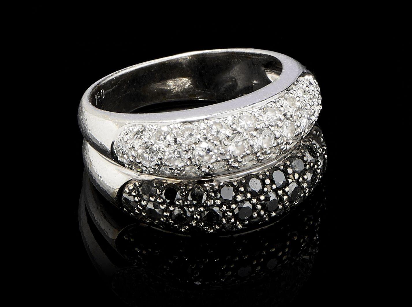 151. Bague godronnée pavée de diamants et de diamants noirs