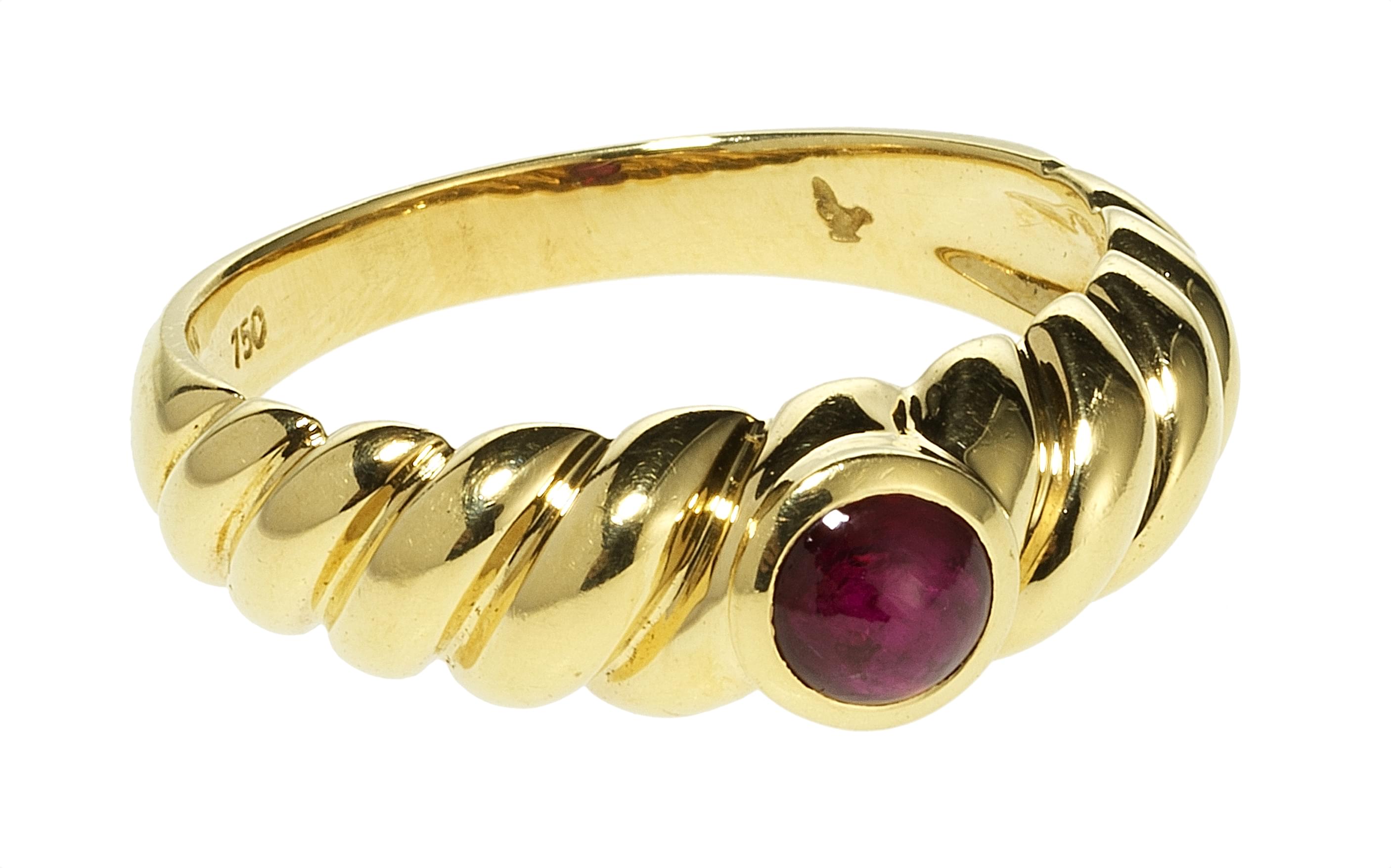 3012. Bague godronnée sertie d'un rubis taille cabochon