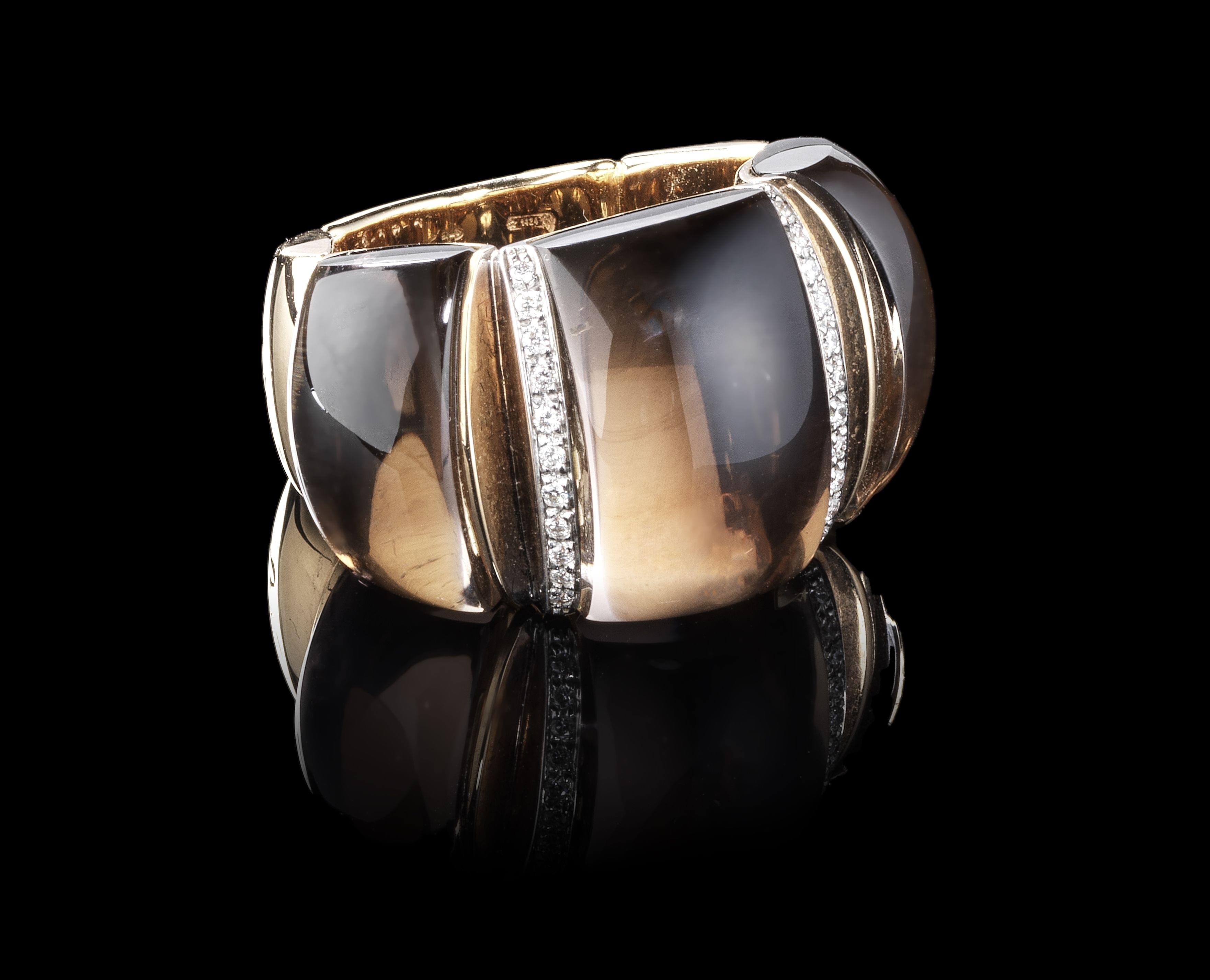 Cadran texturé marron, aiguilles et index bâtons dorés, or 750,...