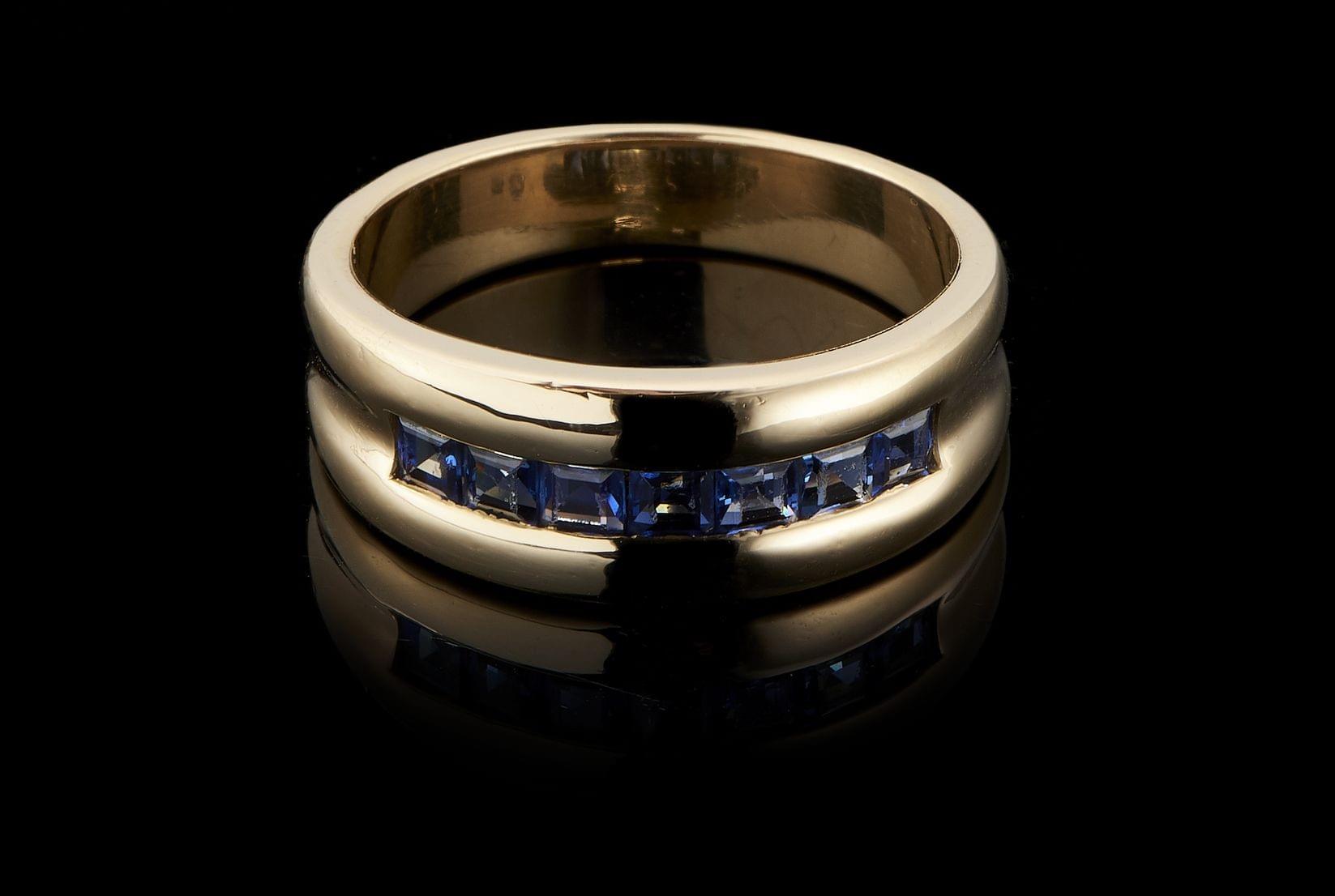 151. Bague godronnée sertie d'une ligne de saphirs taille princesse