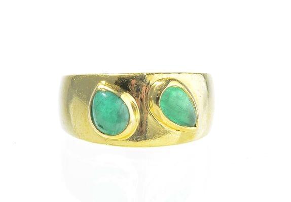3166. Bague jonc sertie de deux émeraudes taille poire