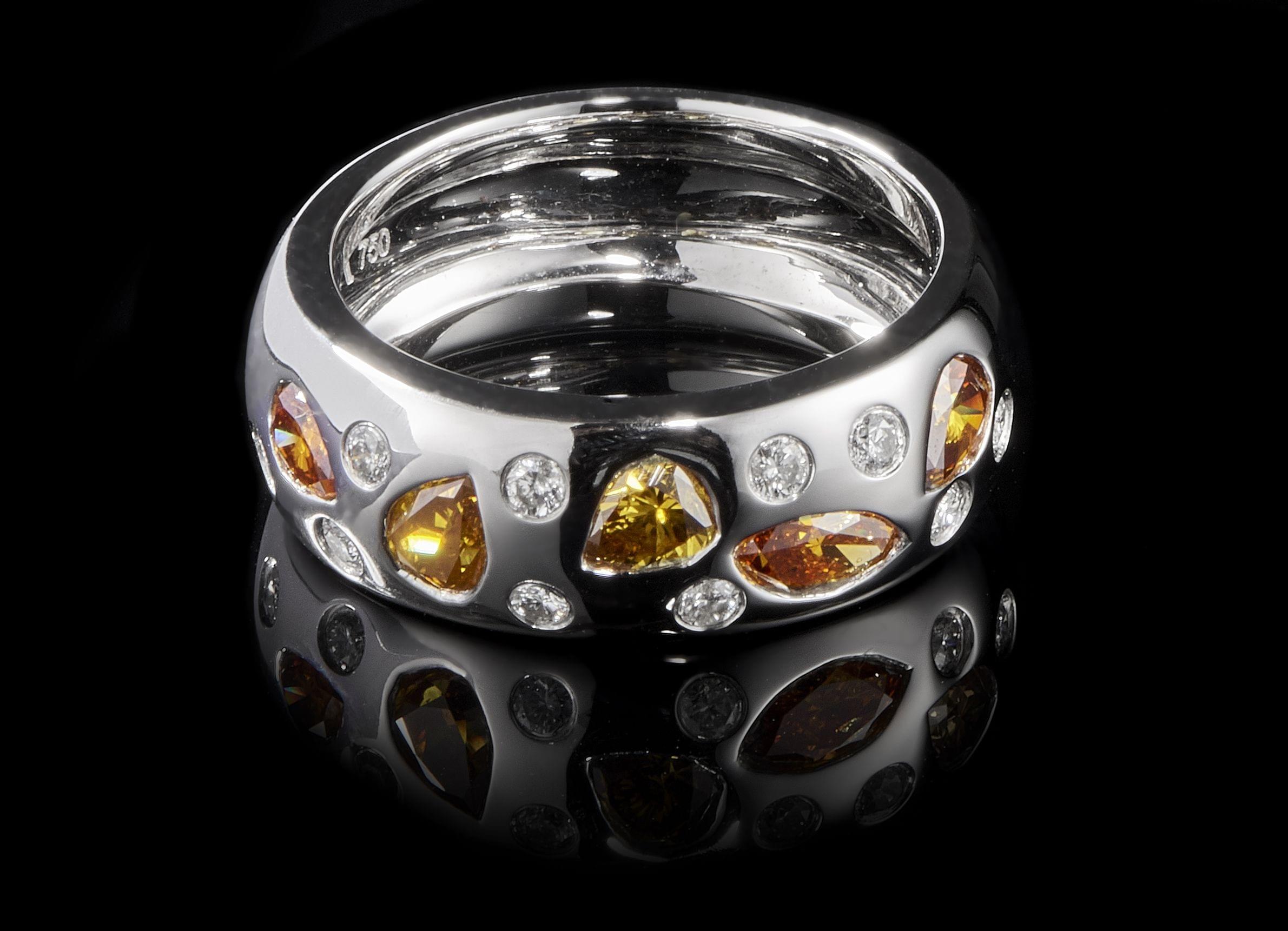 136. Bague jonc sertie de diamants cognac rehaussés de diamants taille brillant