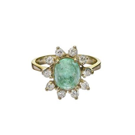 252. Bague marguerite sertie d'une émeraude taille cabochon entourée de diamants