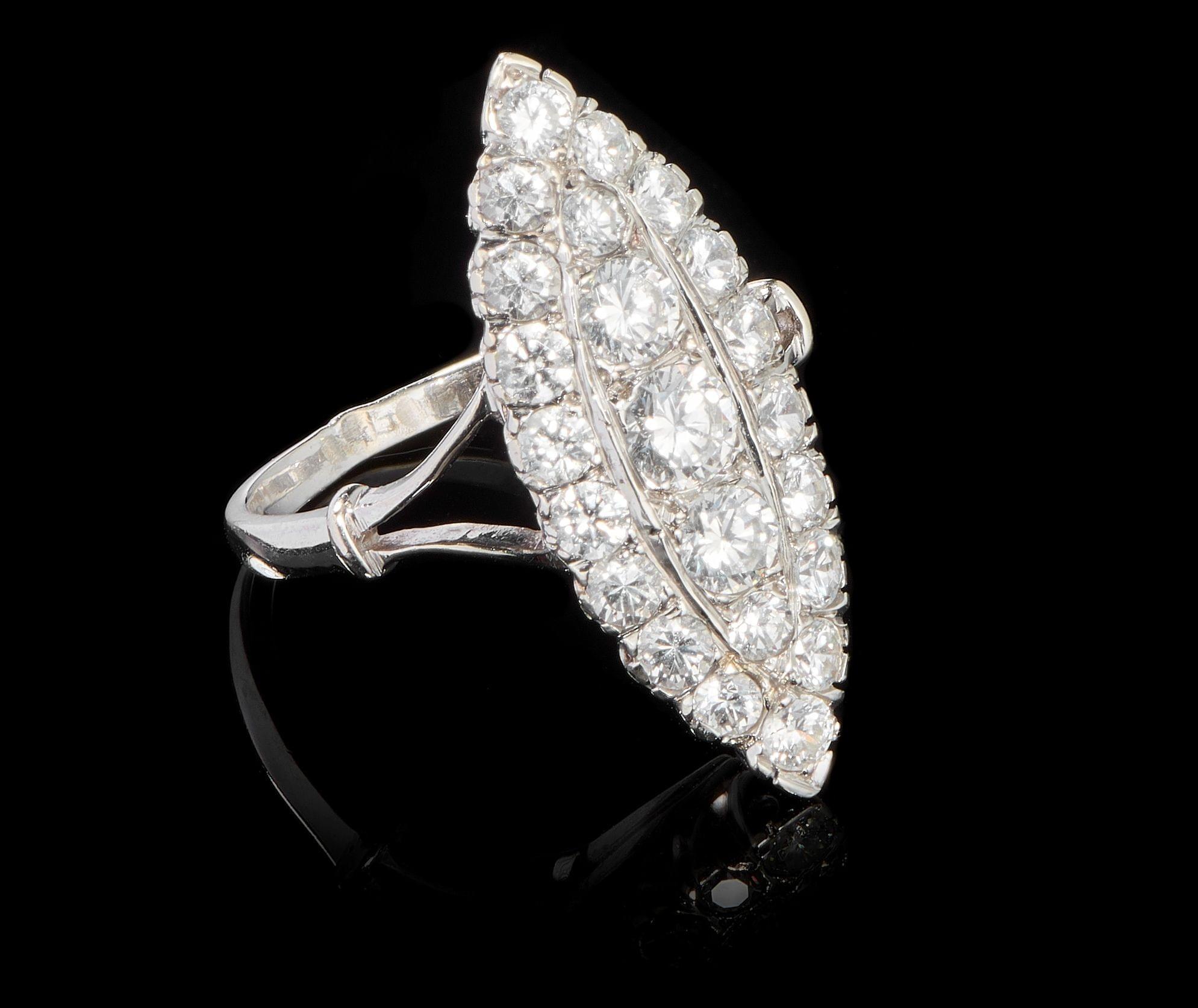 932. Bague marquise pavée de pierres d'imitation pour le diamant