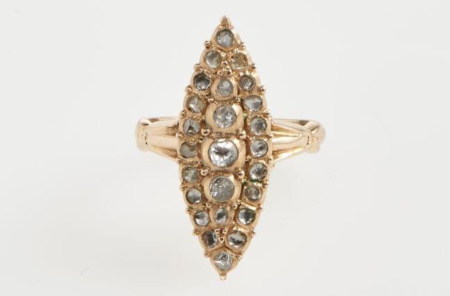 3183. Bague marquise sertie de diamants taille rose