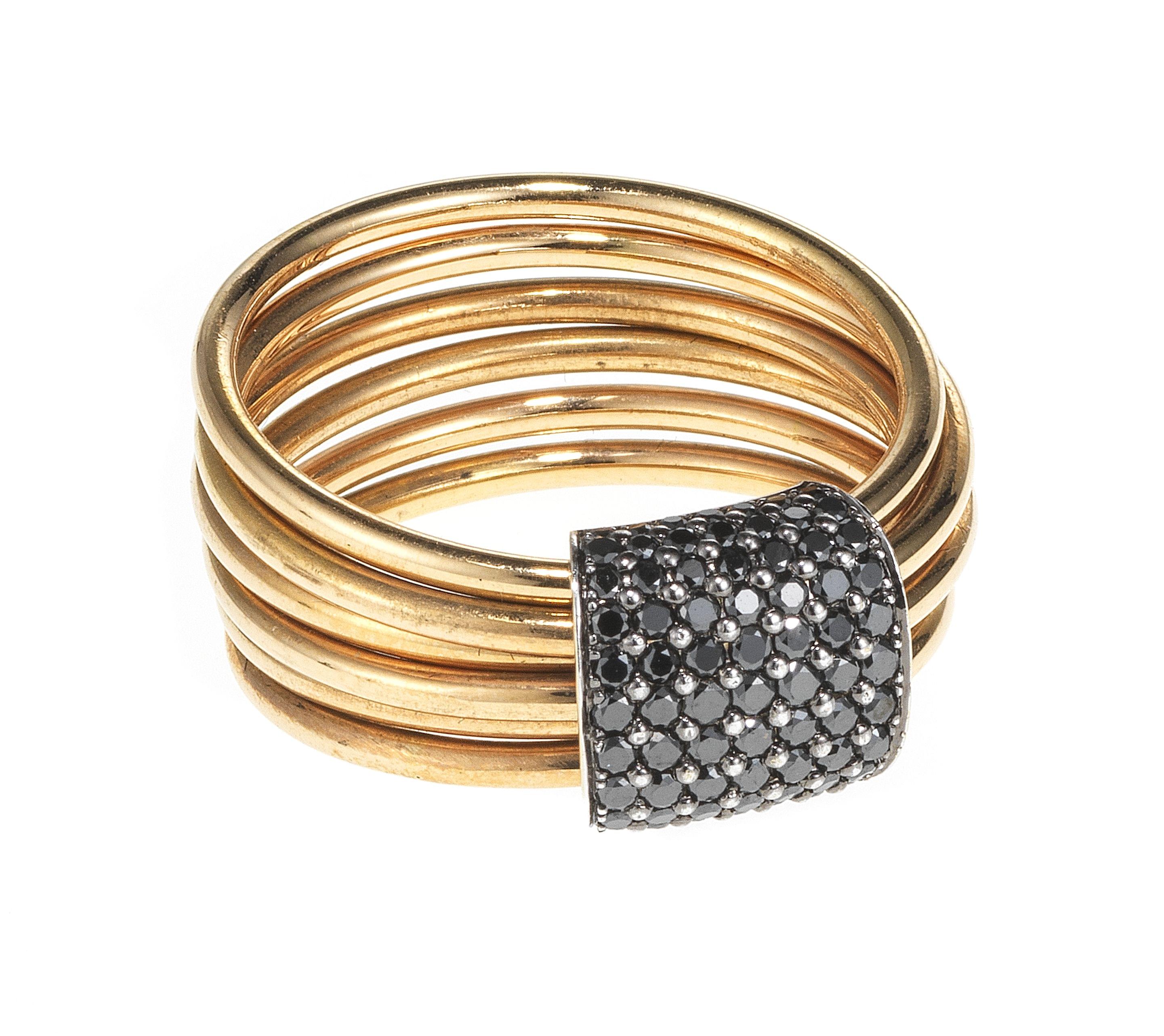 3304. Bague multi anneaux retenus par un motif pavé de diamants noirs