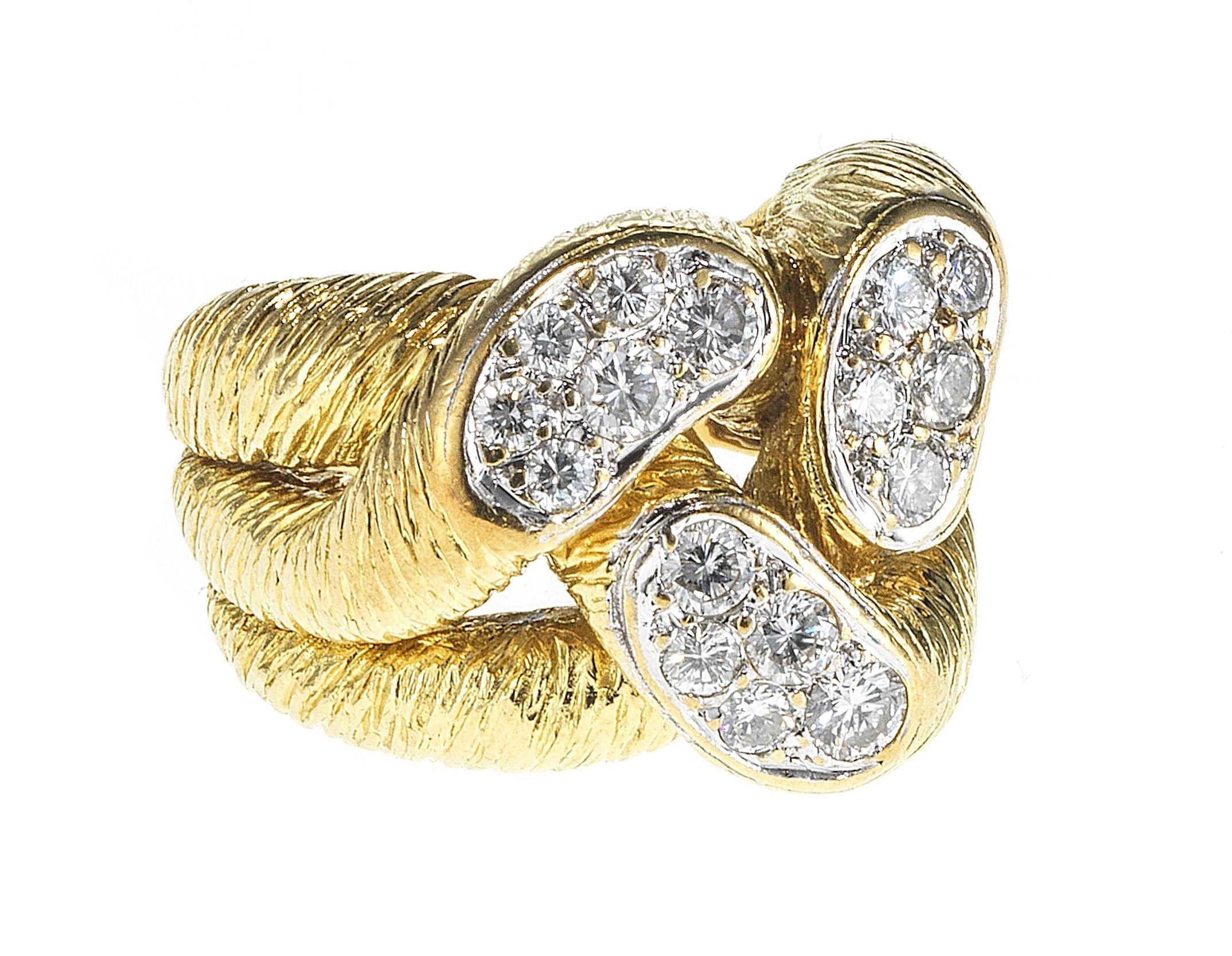 3313. Bague nœud stylisée pavée de diamants (env. 0,5 ct)