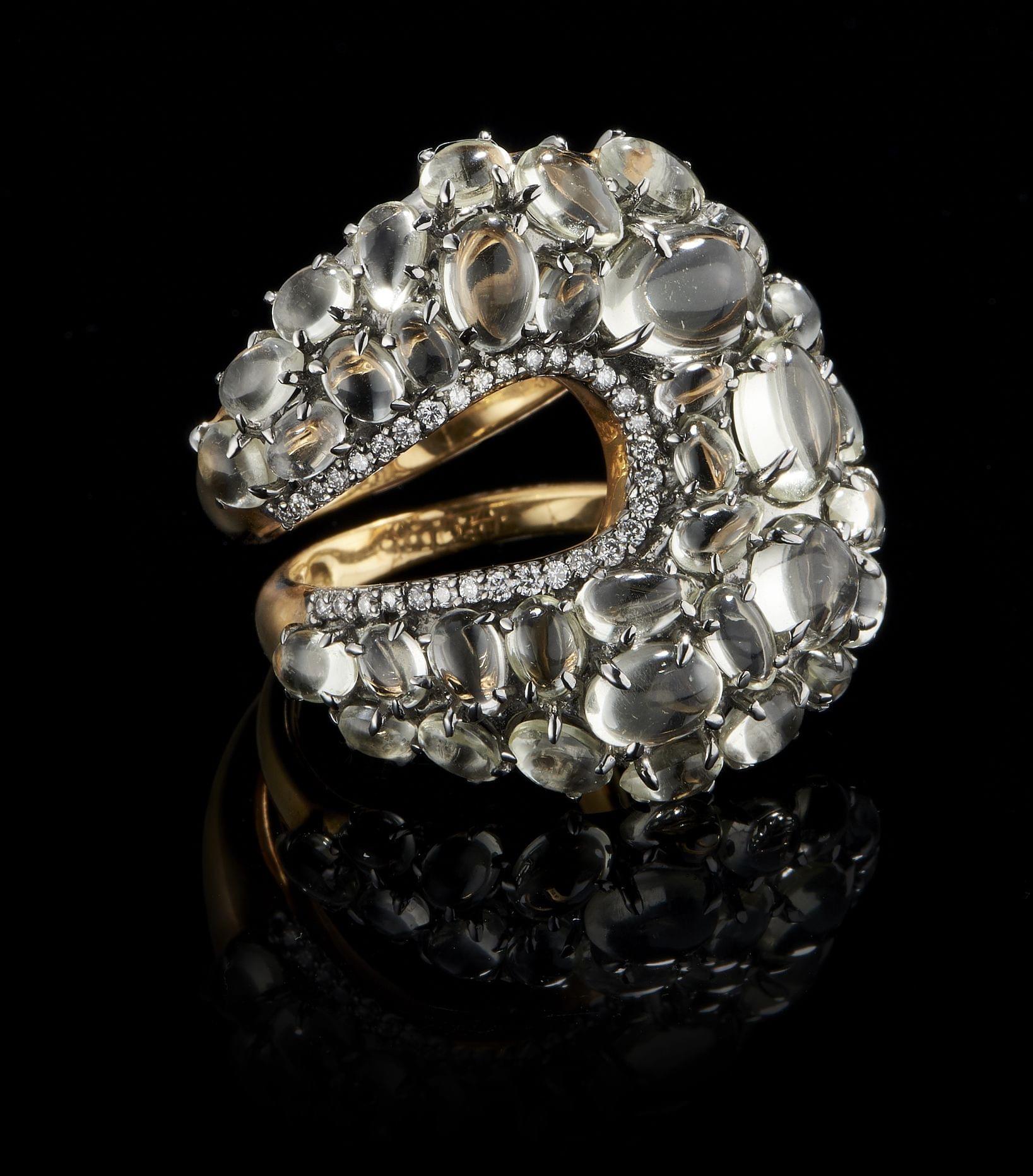 153. Bague pavée de cristal de roche taille cabochon, rehaussée d'une ligne de diamants