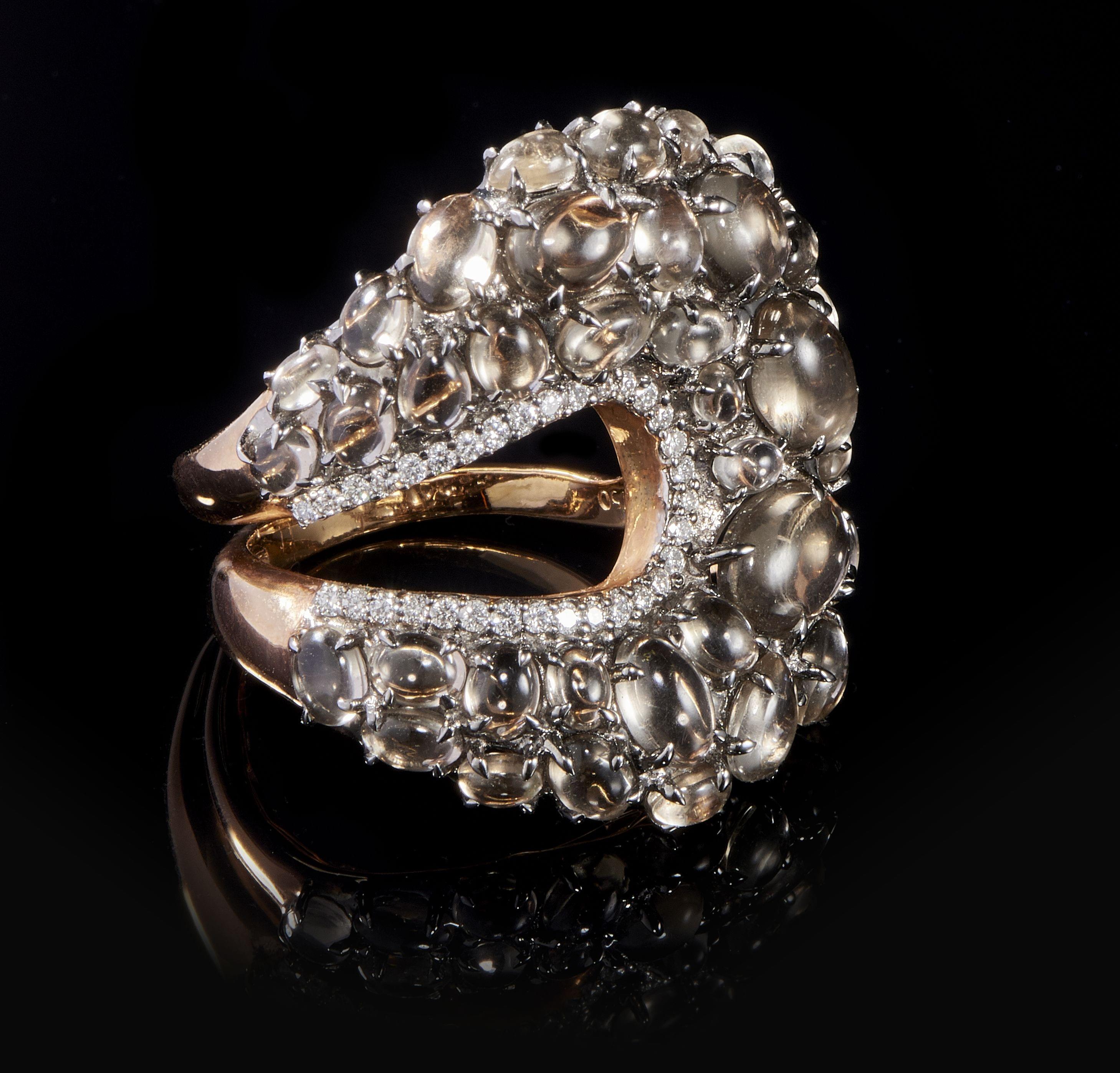 75. Bague pavée de cristal de roche taille cabochon, rehaussée d'une ligne de diamants