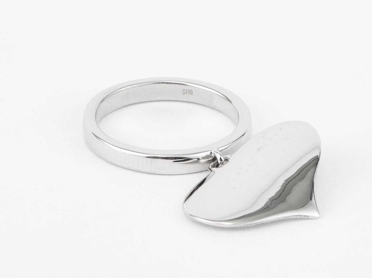 Or gris 750, H 2 cm. On joint une chaîne en argent 925, L 40 cm.