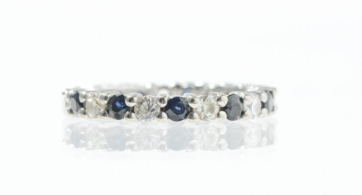 3127. Bague rivière sertie de saphirs et de diamants d'imitation en alternance