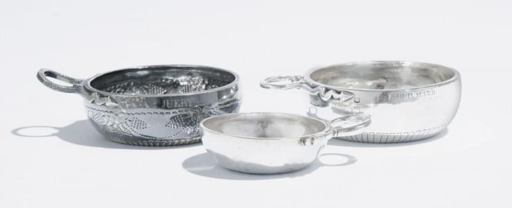 513. 3 grands taste-vin anse serpent d'époque Restauration