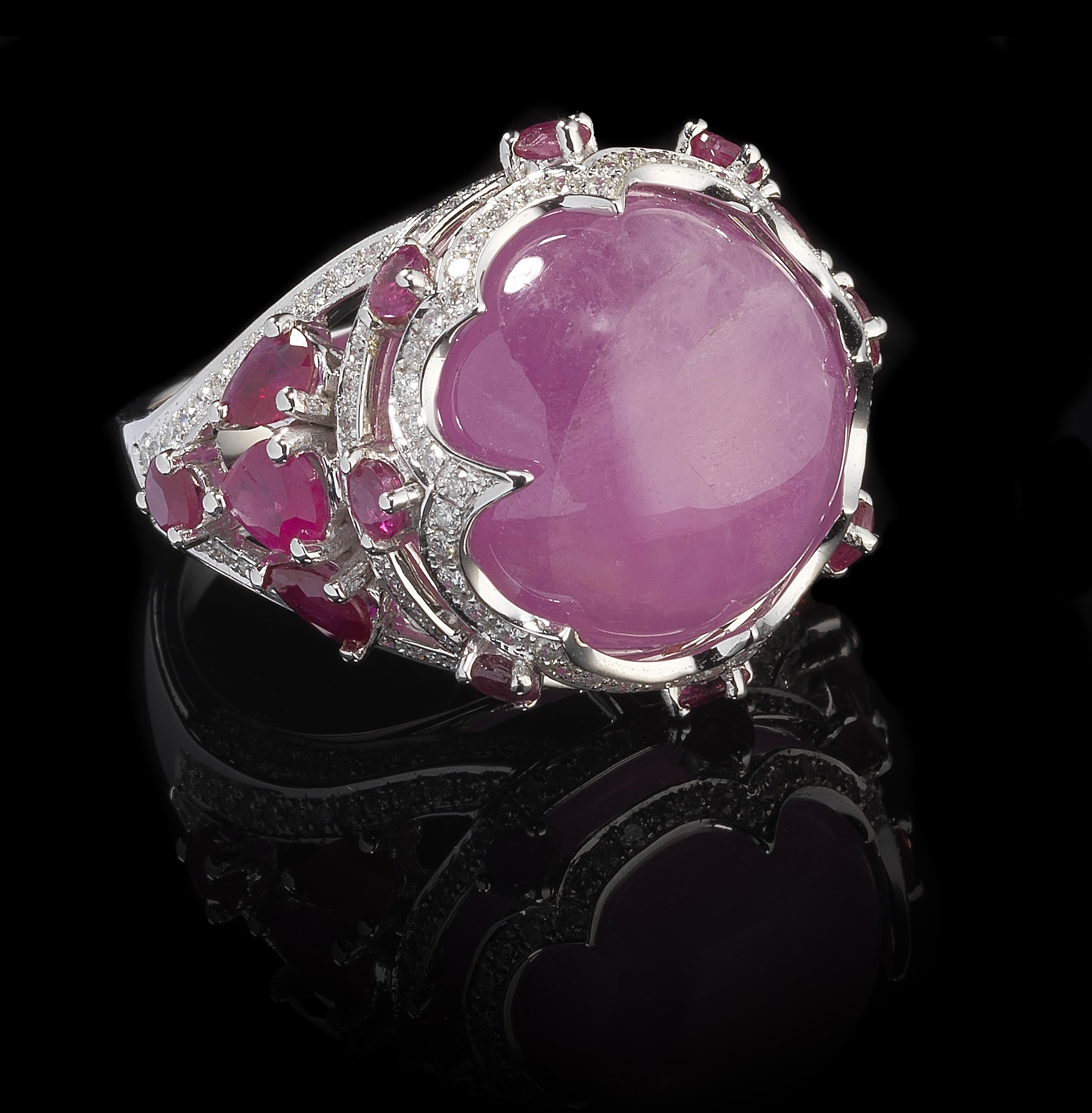 3561. *Bague sertie d'un rubis birman taille cabochon (25,58 ct)