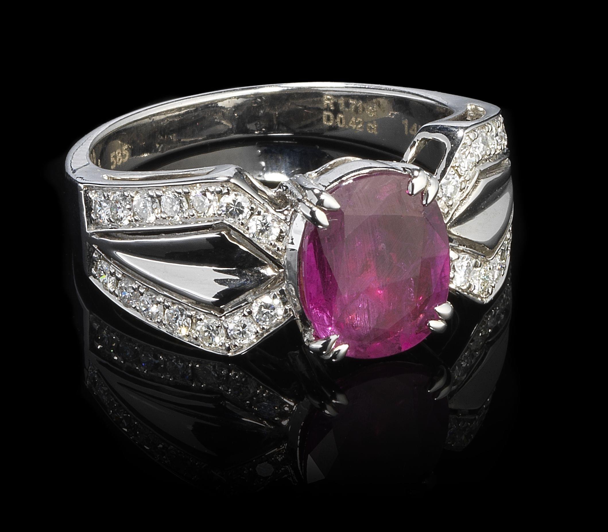 63. *Bague sertie d'un rubis du Siam taille ovale (1,71 ct)
