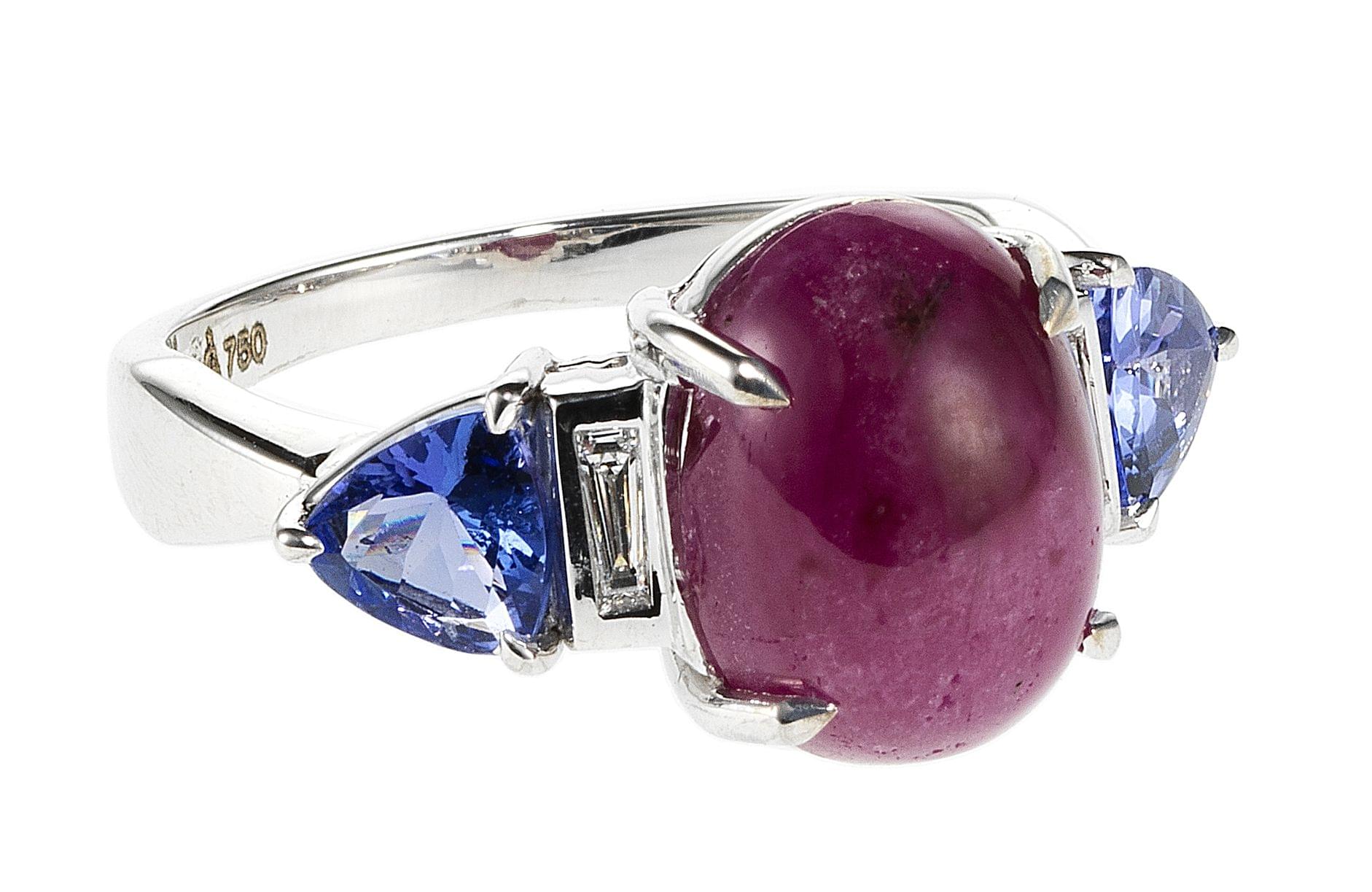 3318. *Bague sertie d'un rubis taille cabochon ovale (env. 6 ct)