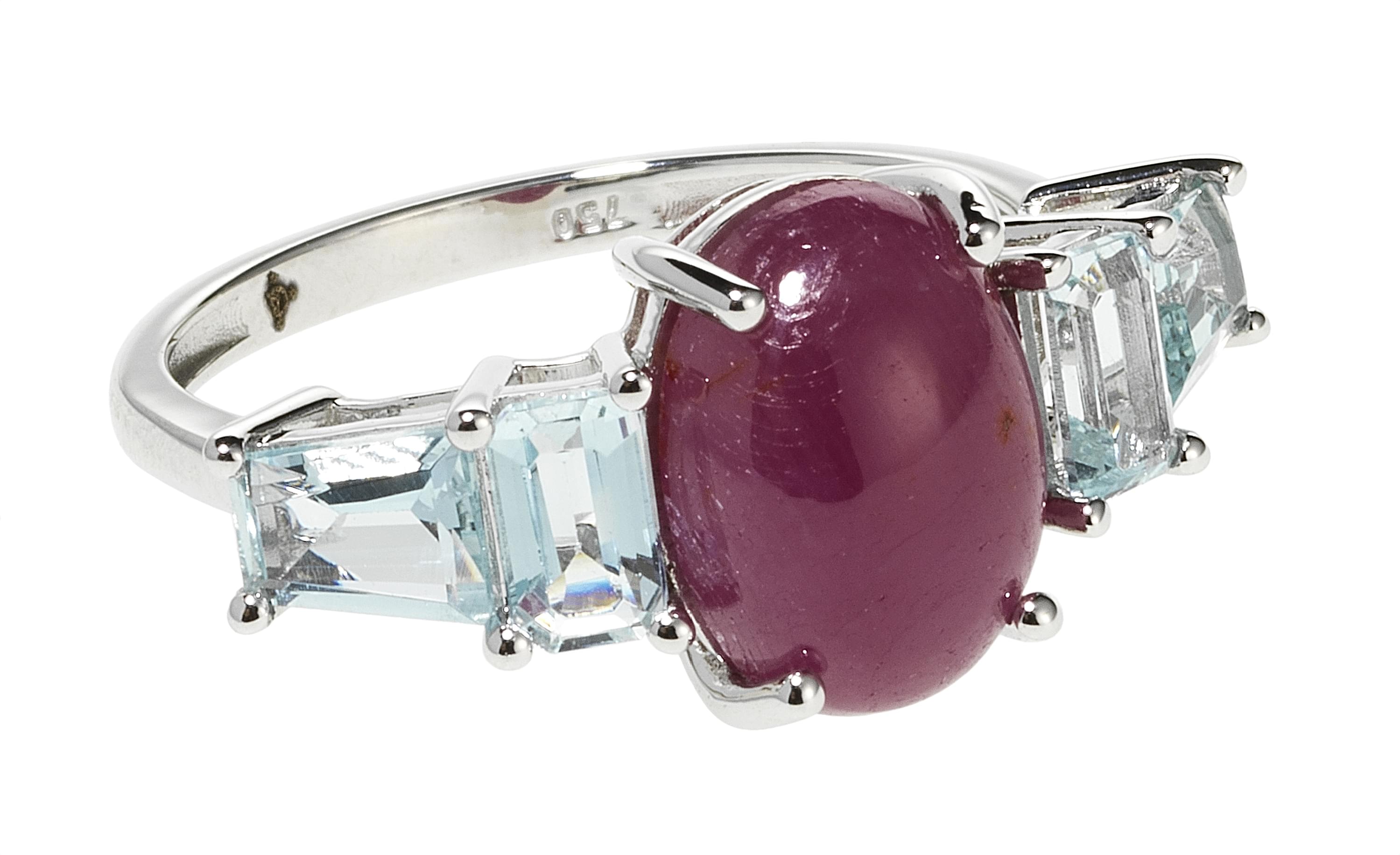 3322. *Bague sertie d'un rubis taille cabochon ovale non chauffé (4,01 ct)
