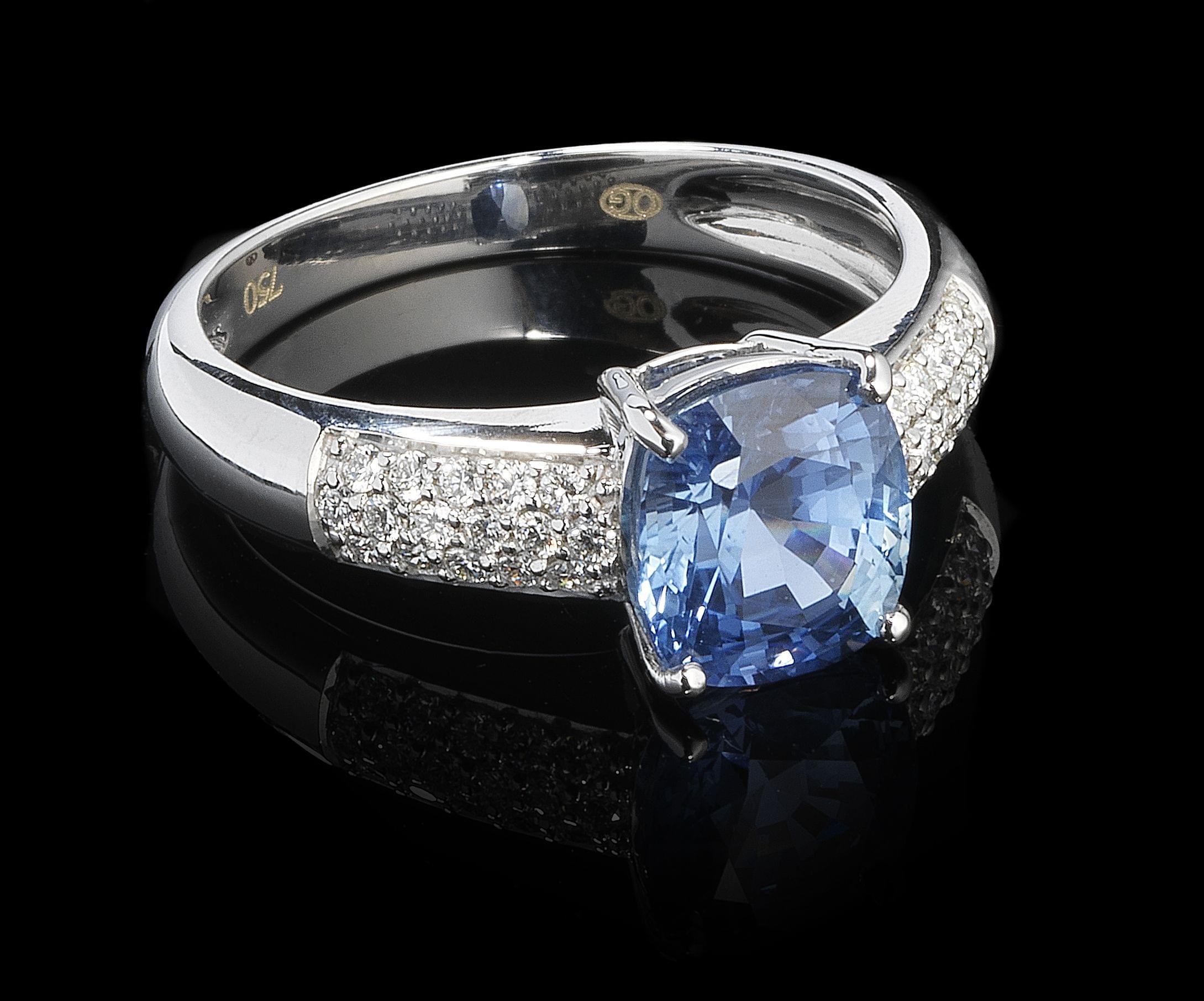 67. Bague sertie d'un saphir birman non chauffé taille coussin (2,51 ct)